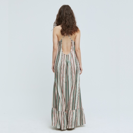 COZEE-抗菌落地吊帶露背彩條洋裝