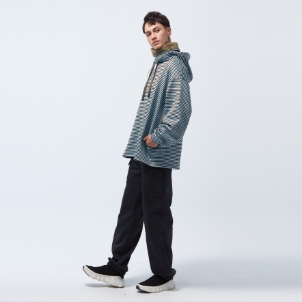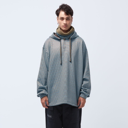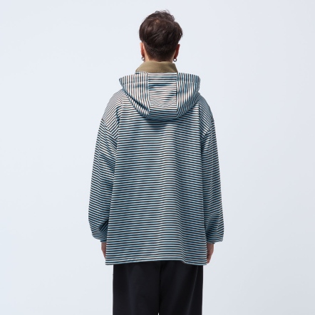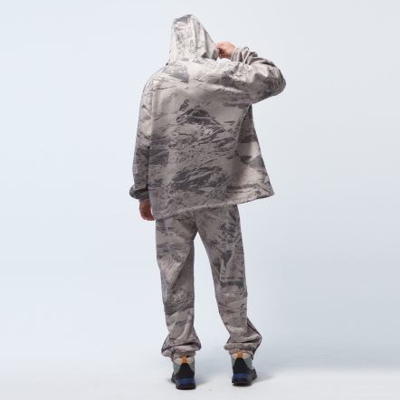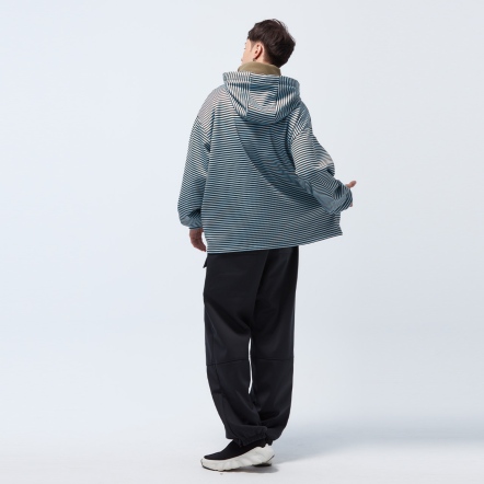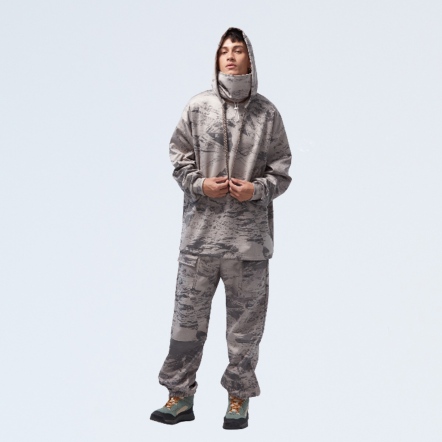 面料立挺的寬版連帽衝鋒衣,讓休閒穿搭也充滿高級感,並利用雙色編織寬抽繩,配合整體衝鋒衣的廓型感,布料使用帶著微亮光滑感的防透濕貼合刷毛布,無論是假日外出還是上山下海,都是既防雨又防髒的萬用上衣。