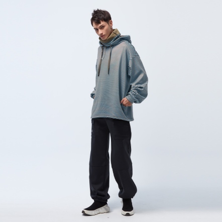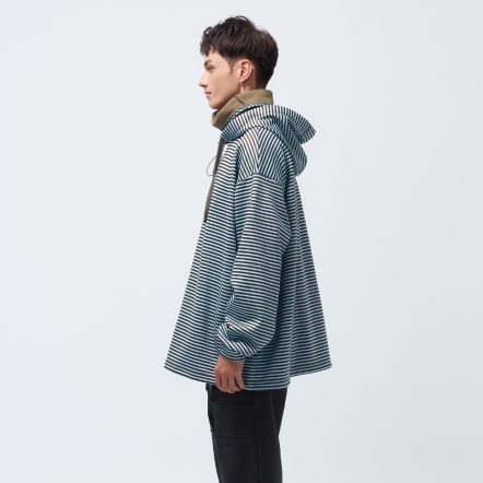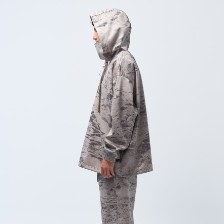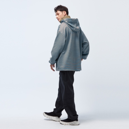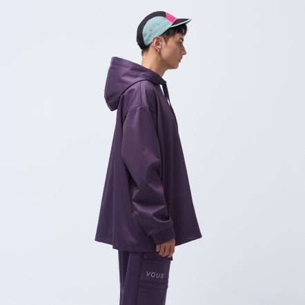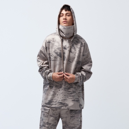 寬鬆版型,修飾身型表層貼合防透濕刷毛面料,袖口縮口設計,擋雨快乾連帽寬版編織抽繩,可自由調節兩側口袋,兼具造型與實用