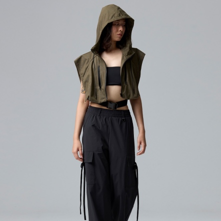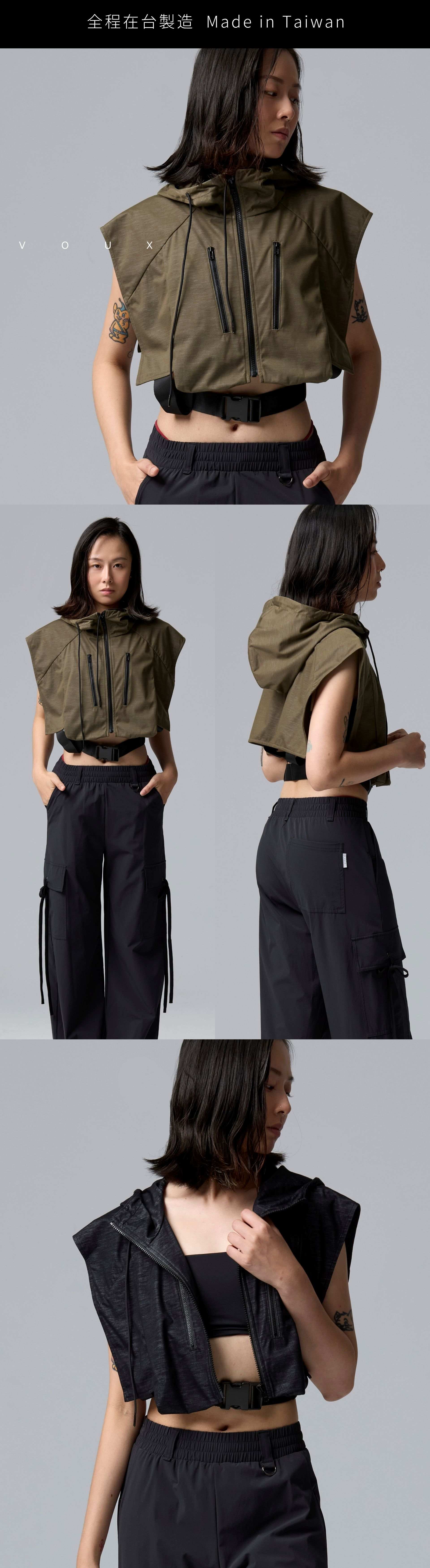 VOUX防潑水造型連帽短版背心是一款專為追求時尚與實用功能而設計的中性款式。這款背心擁有微落肩的寬鬆版型,讓穿著者在活動時能感受到十足的舒適與靈活性。其前胸的拉鍊立體袋,除了增添了實用性,還能巧妙地展現獨特的風格,使你在城市街頭或戶外探險時均能保持個性與時尚。 背心所採用的金屬感面料,不僅具備防潑水功能,能有效抵擋突如其來的天候變化,還在視覺上為整件作品增添了一絲現代感。此外,下襬的調節帶設計,讓使用者能夠依需求調整合身度,展現出更好的剪裁效果,無論是輕鬆搭配街頭風格還是戶外工裝風格,皆游刃有餘。 這款防潑水造型連帽短版背心,不僅適合戶外運動及旅行,也是日常穿搭中的一個絕佳單品。