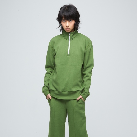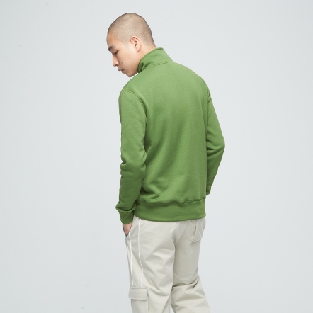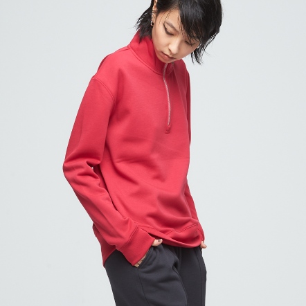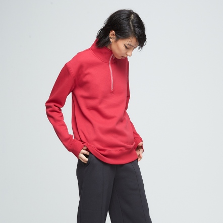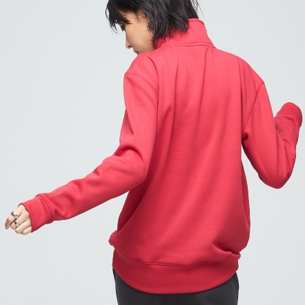 雙染單面刷毛面料,採用針織羅紋袖口及下襬設計,蓄熱又保暖。中高領前襟拉鍊設計,可大幅增加穿著舒適度,結合微落肩寬鬆版型,呈現隨興自在的時髦感,任意搭配下著即可穿出屬於自己的運動風格。