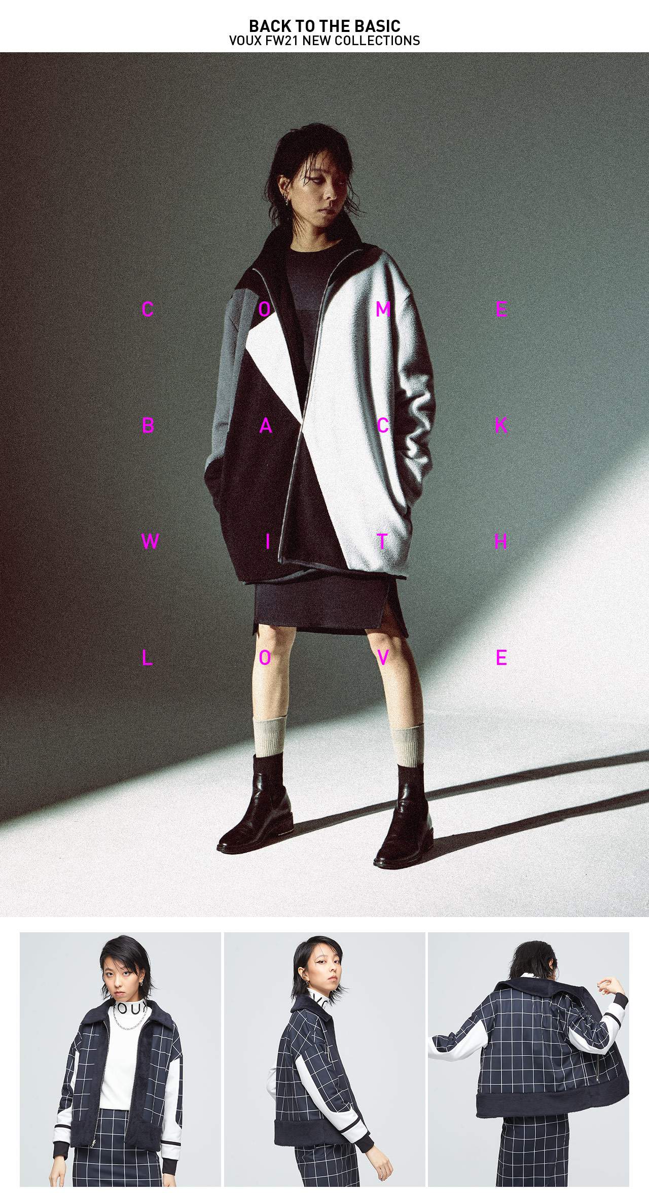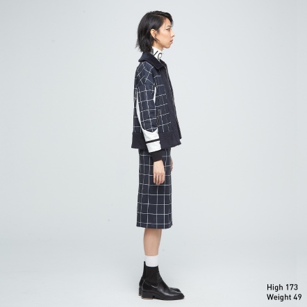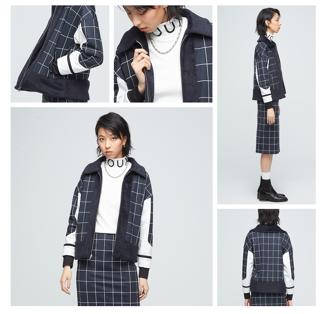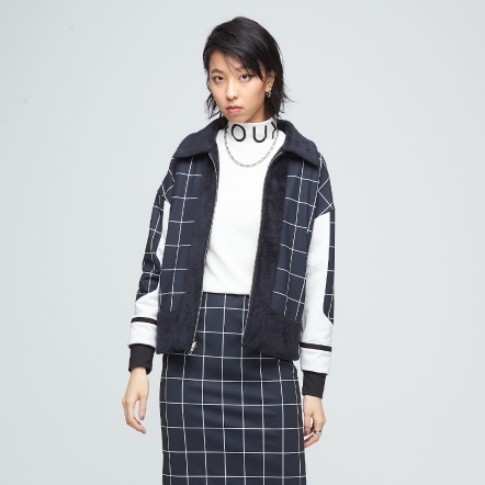高質感的格紋印花與毛絨拼接,加上袖口剪接裝飾,展現出都市女性的端莊典雅。雙面皆可穿著,不管哪一面,搭配有型,都會時尚又體面。