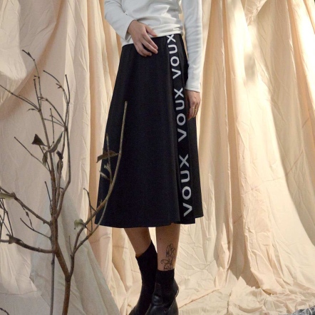A字中長裙加上兩側VOUX訂織緹花織帶,別具特色與魅力。附有兩側口袋,方便收納,面料高彈環保再生紗透氣舒適、遇汗不黏身,穿起來如絲絨般滑順,觸感極佳!隨意搭配上衣單品,就能個性有型。
