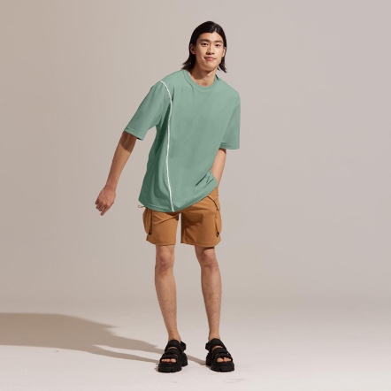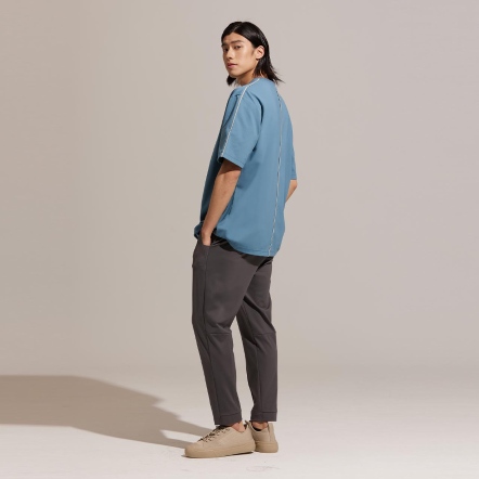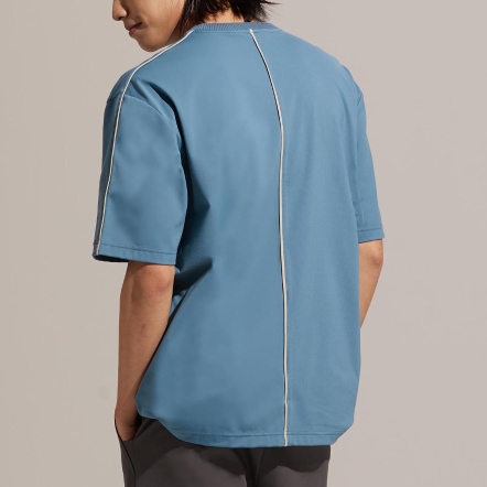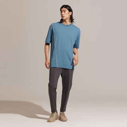 REBOOT-動能衣系列日常休閒的寬鬆版型衣領為羅紋圓領包邊設計,舒適不勒頸跳色立體車線,內斂穿出獨有個性硬挺透氣面料,免燙不起皺