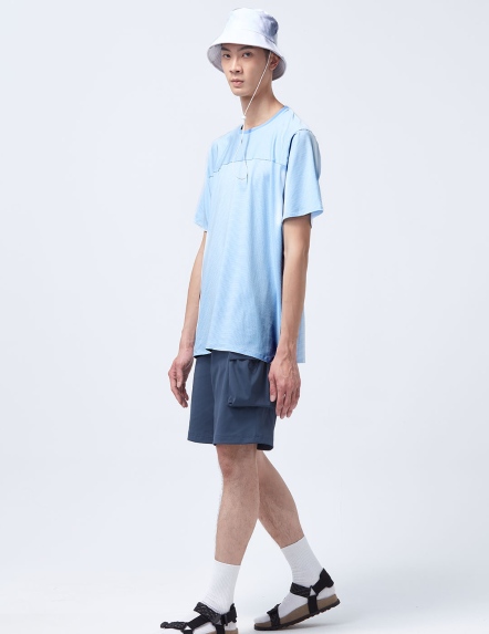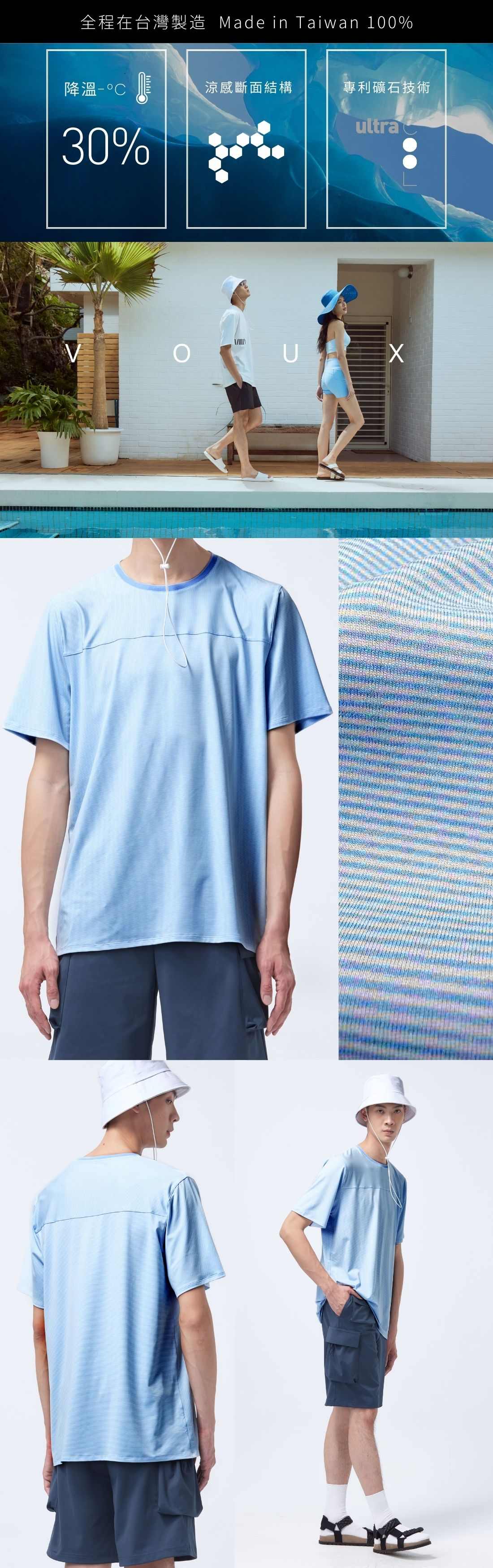 COOLMAX極度冰感面料,觸感如水流輕撫肌膚般絲滑沁爽,將天然玉石冷礦微粒永久植入纖維核心,肌膚接觸瞬間立即觸發-5°C冰涼體感,彷彿為身體披覆一層會呼吸的「液態涼感膜」,搭載ULTRACOOL®「極地冰芯科技」獨家專利超導濕排技術,創造「遇水即涼、動態冰爽」的獨特逆溫差效應。