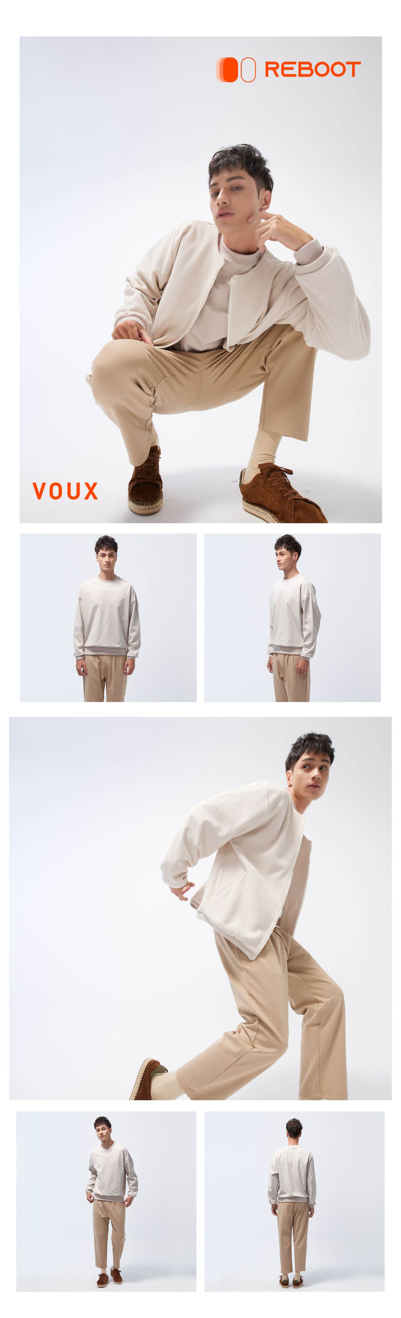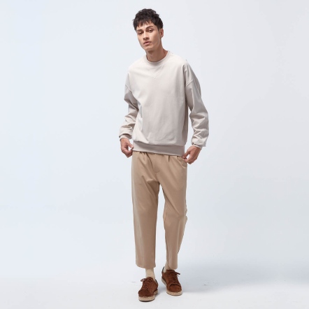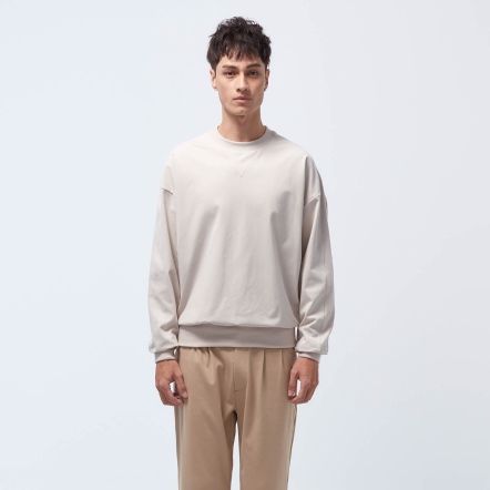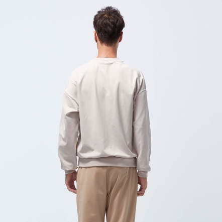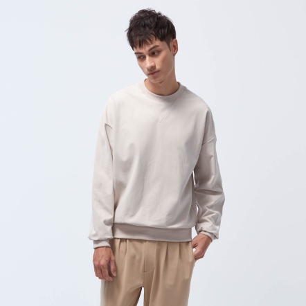 秋冬百搭的基礎款大學T,並添加貼心細節設計,微落肩的版型,具修飾肩寬的效果,胸前V字剪接與羅紋束口,加強固定讓領口不易鬆脫,維持立挺質感。