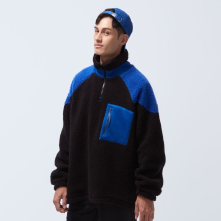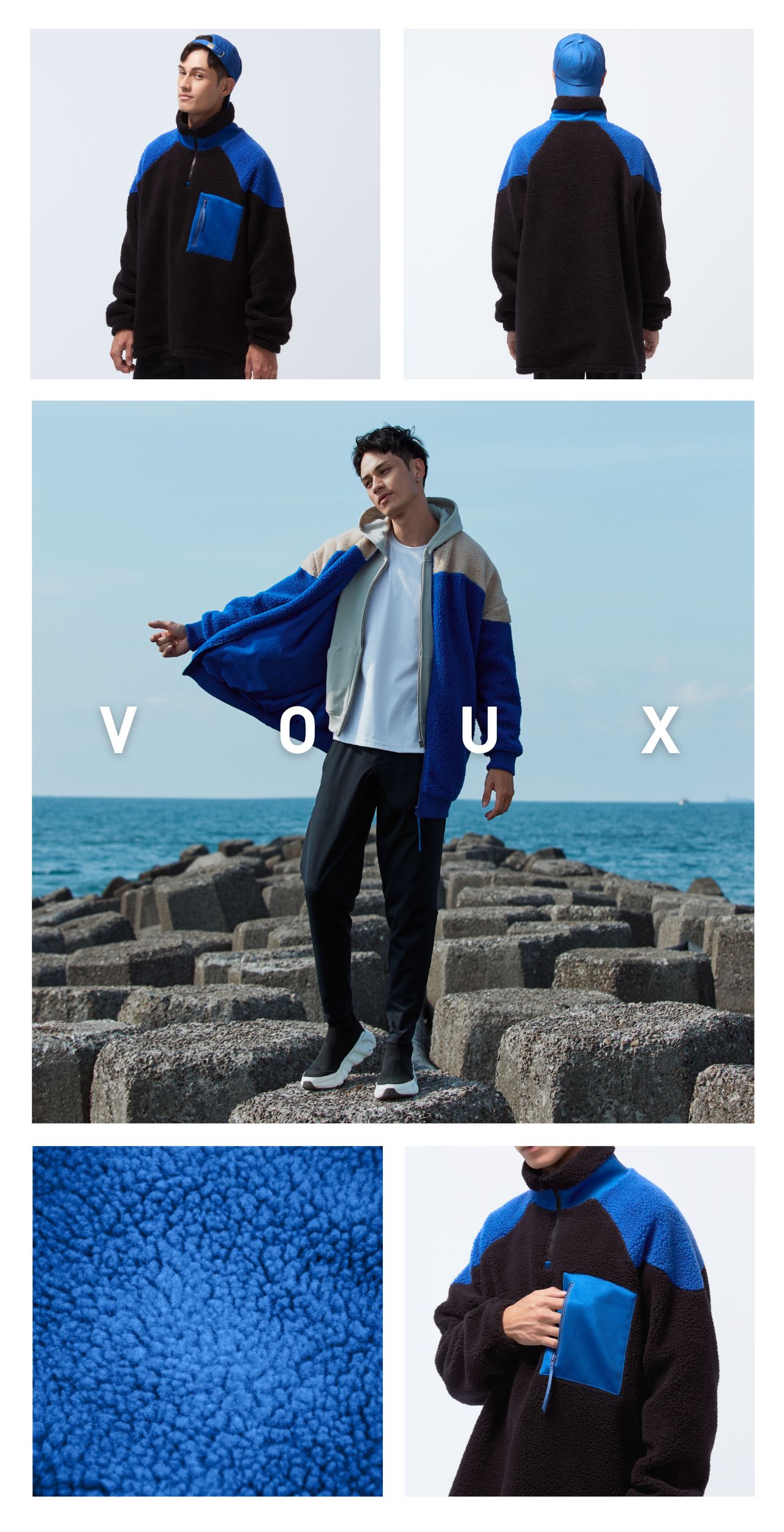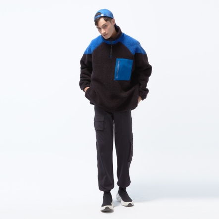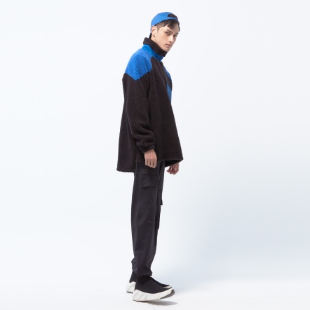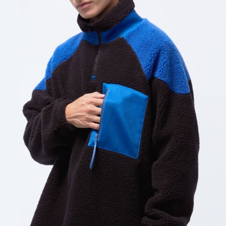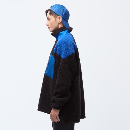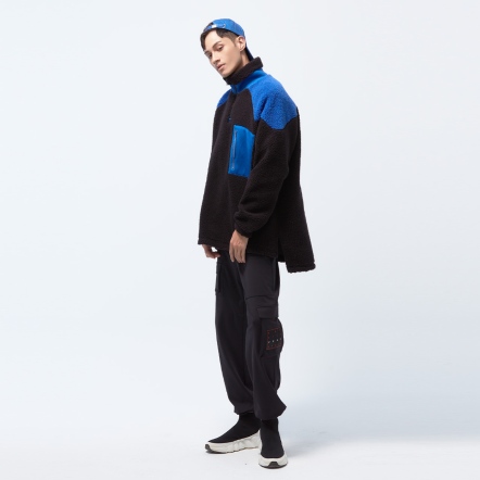 高領門襟拉鍊設計異材質拼接、增加層次感下擺兩側開衩,方便穿脫多口袋設計,兼具造型與實用