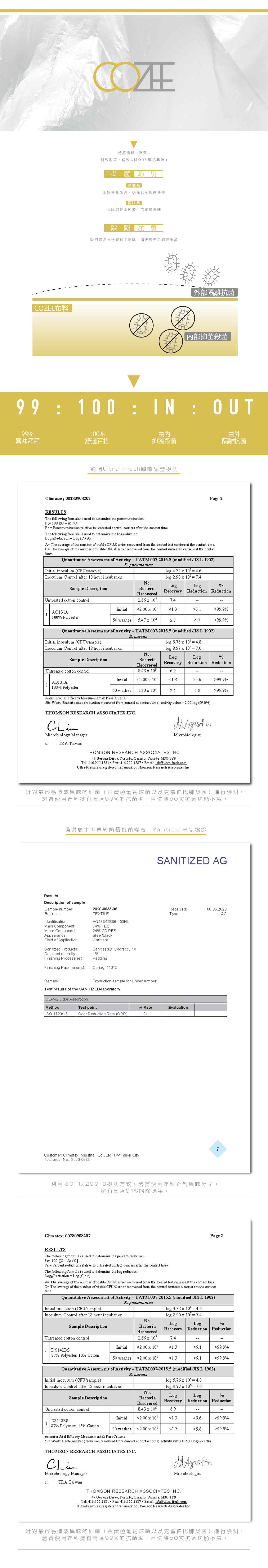 本款為COZEE抗菌除臭系列,使用先進的紗線技術,做到先抗菌、再吸附臭味的進階功能。近乎完美的雙效對策,最終能有效去除99%尷尬異味!面料為含棉內刷毛特別紡紗,可改善棉製品過多毛羽的外觀,並大幅降低起毛球機率,為日常好感衣著推薦首選。