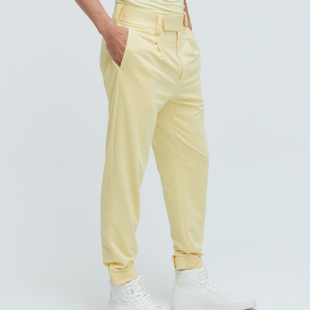 俐落修身版型亮眼色系,獨特有個性腰頭及褲口可自由調節,時尚多變休閒及正式場合都適穿