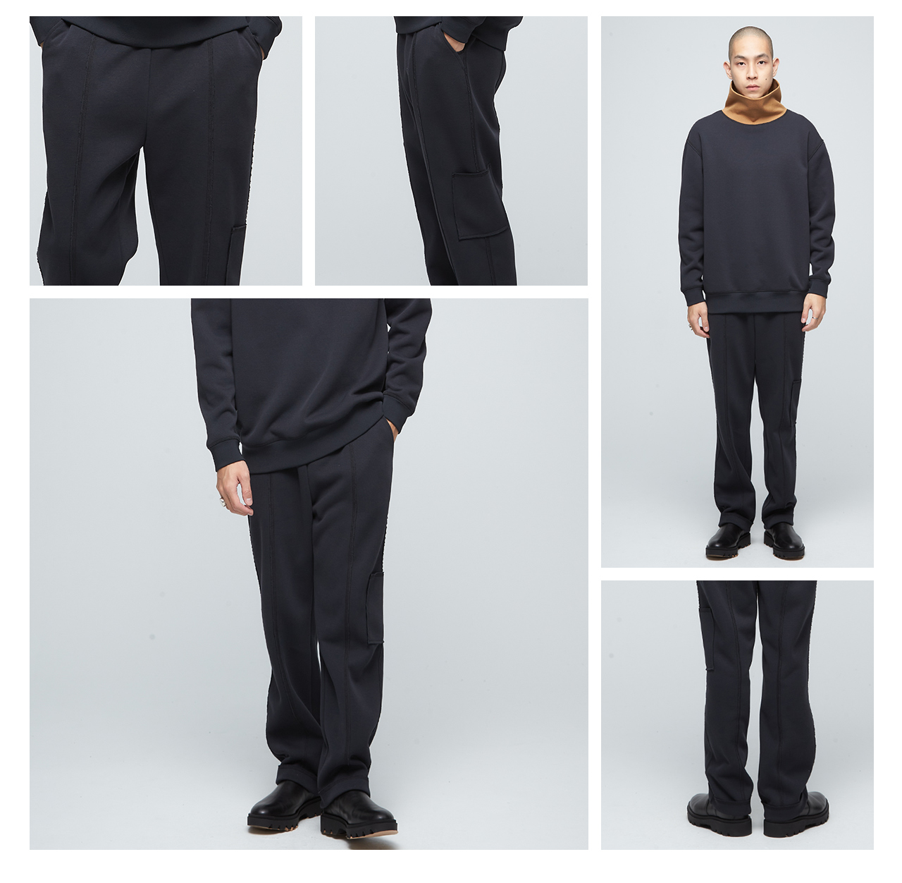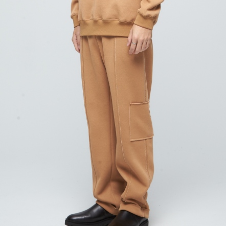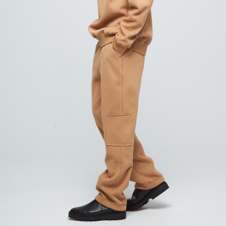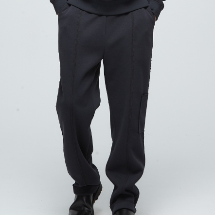 寬鬆直筒版型彈性腰身,穿搭舒適多口袋設計,方便實用剪接處不收邊設計