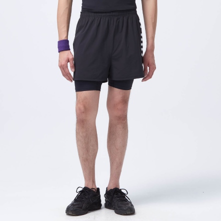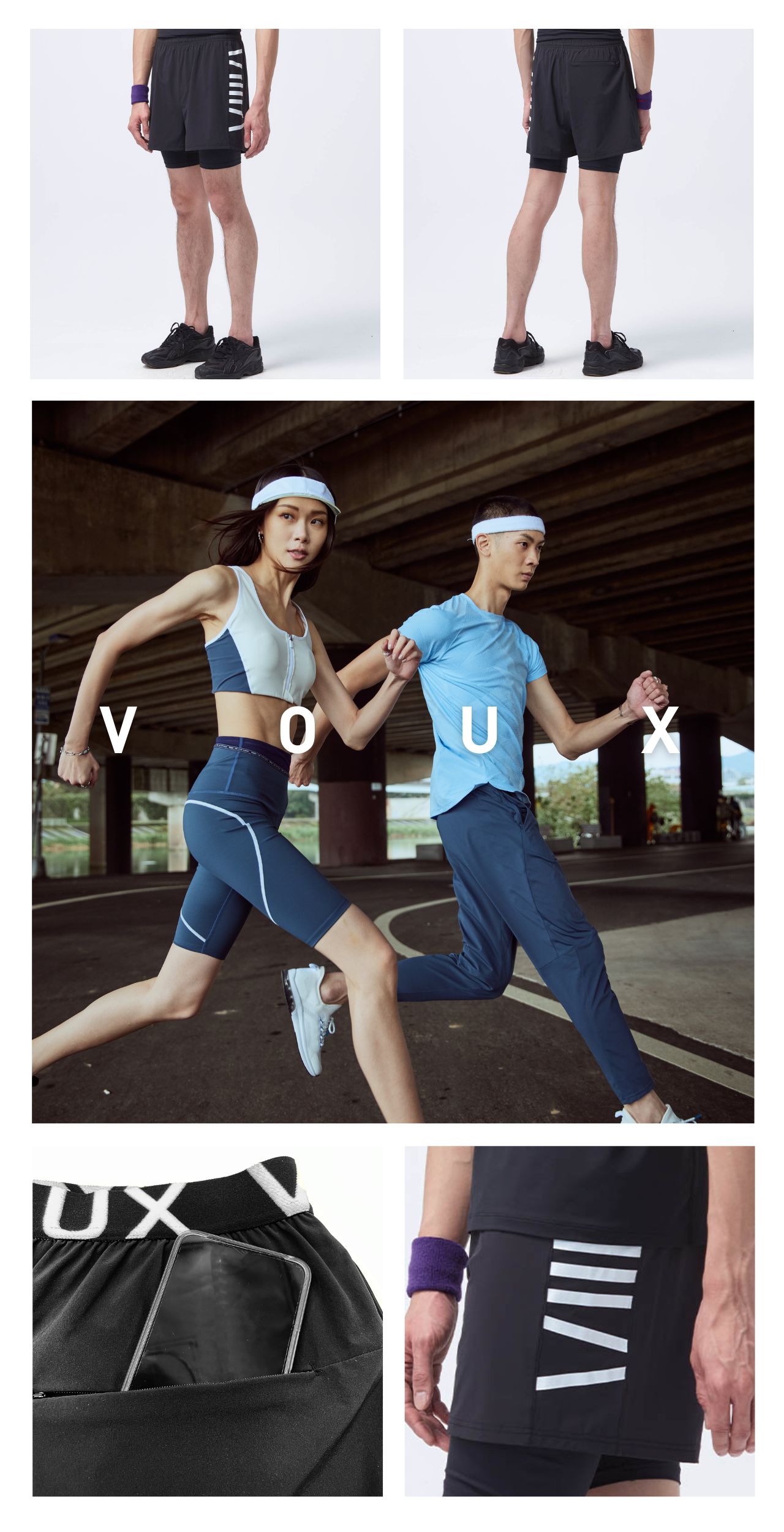 右側口袋,方便收納側邊LOGO燙標,時尚大方可調節式抽繩搭配鬆緊帶褲腰二合一雙層褲設計吸濕速乾、抗菌除臭