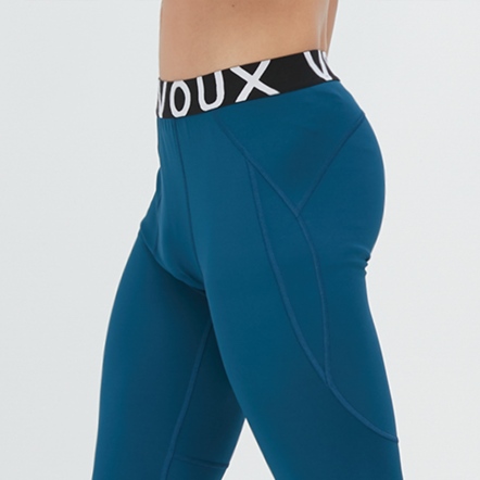 前片延伸至後片的配色爬線,搭配異材質面料的分割拼接,完美修飾腿部比例。本款採用寶特瓶再生纖維,布感舒適高彈,並具高度包覆性,享受運動時尚的同時也能減輕環境負擔。