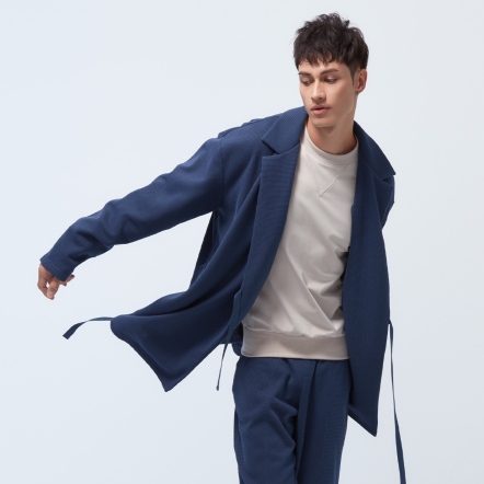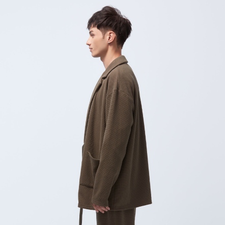 使用粗針面料,手感輕柔卻具重量感,並將印象中較為休閒的和風外套,加入西裝領元素,提高正式感,成為一件風格獨特,且能跨越商務與休閒的外套。本款採用O2MAX活氧纖維技術,鑲在紗線中的天然礦石,能在覆蓋時將體溫轉換為遠紅外線能量,活絡血氧量,幫助身體恢復理想狀態,於高度疲勞或運動後穿著效果更加顯著!