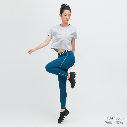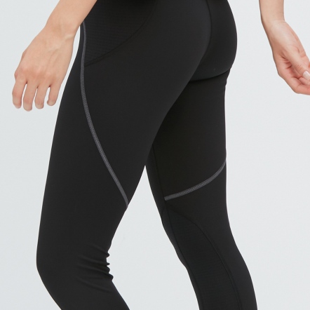 前片延伸至後片的配色爬線,搭配異材質面料的分割拼接,完美修飾腿部線條比例。本款採用寶特瓶再生纖維,布感舒適高彈,並具高度包覆性,享受運動時尚的同時也能減輕環境負擔。