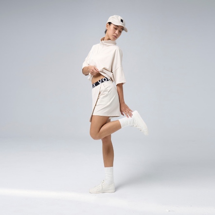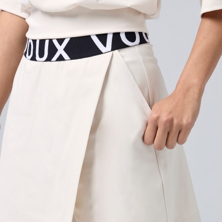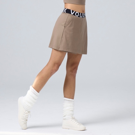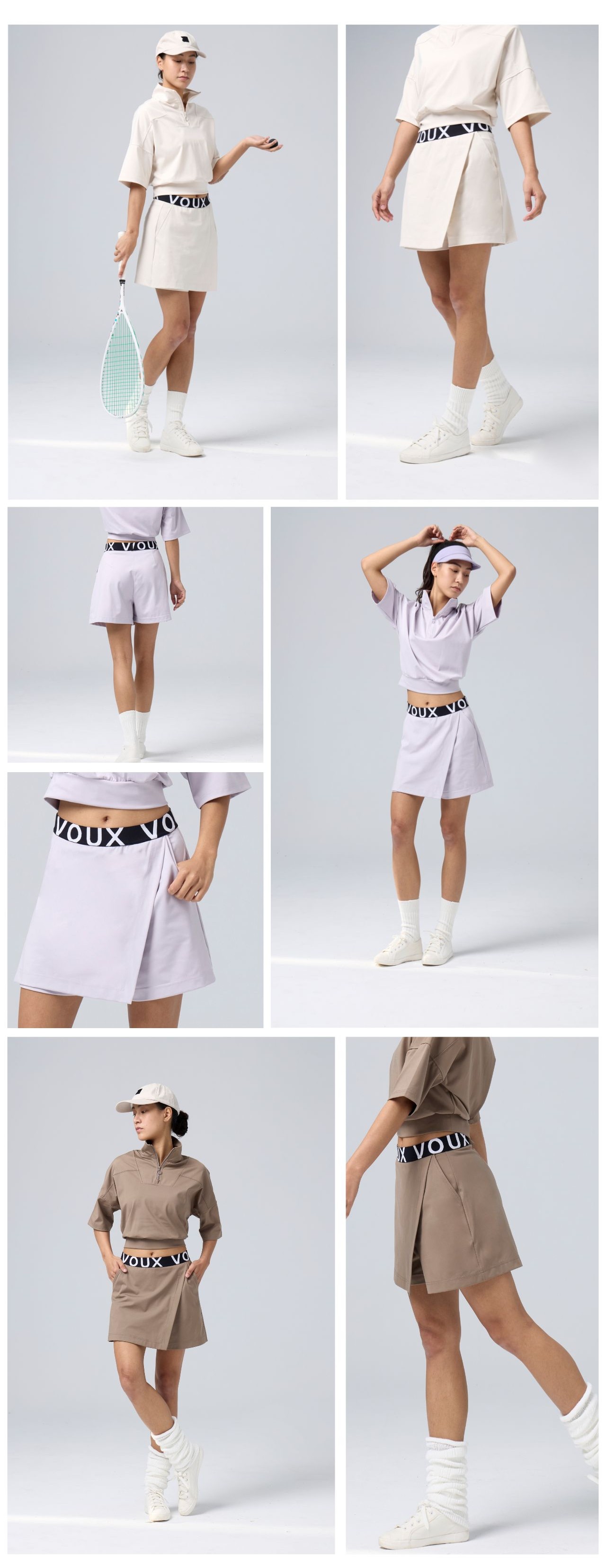 本款褲裙採用微A字立體剪裁,正面流線裙擺展現優雅運動風格,背面則以貼合身形的短褲設計提供絕佳活動自由度。前片精心設計的層次拼布細節,搭配VOUX彈性腰頭緹花透氣織帶,在提供適度支撐的同時,確保全天候穿著舒適無壓迫。兩側斜插口袋完美融入整體線條,,確保激烈運動時安全不走光,讓每個動作都能自信展現。