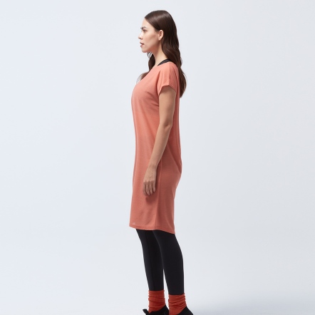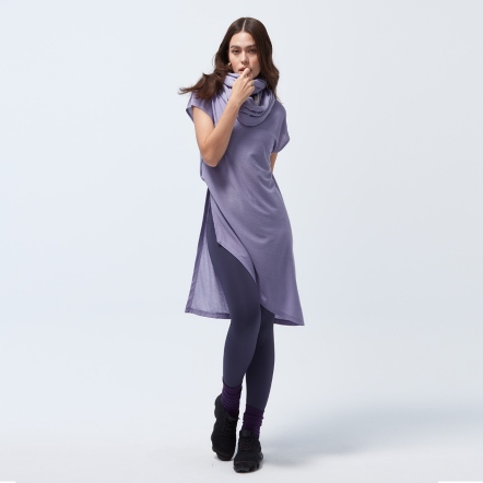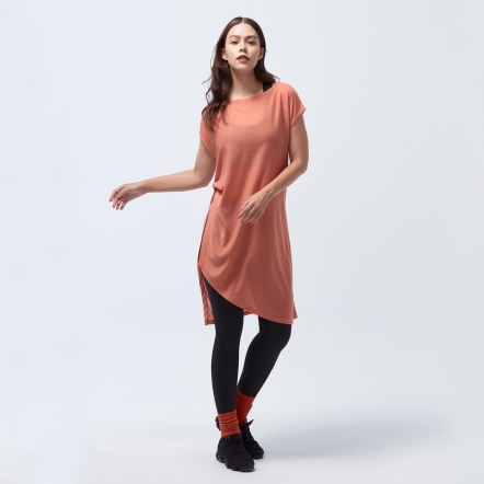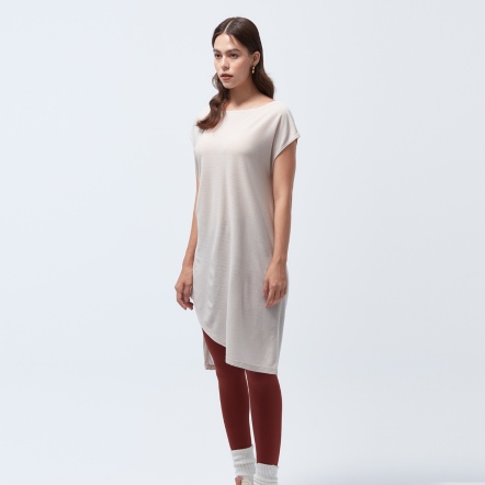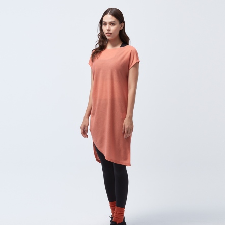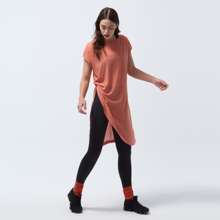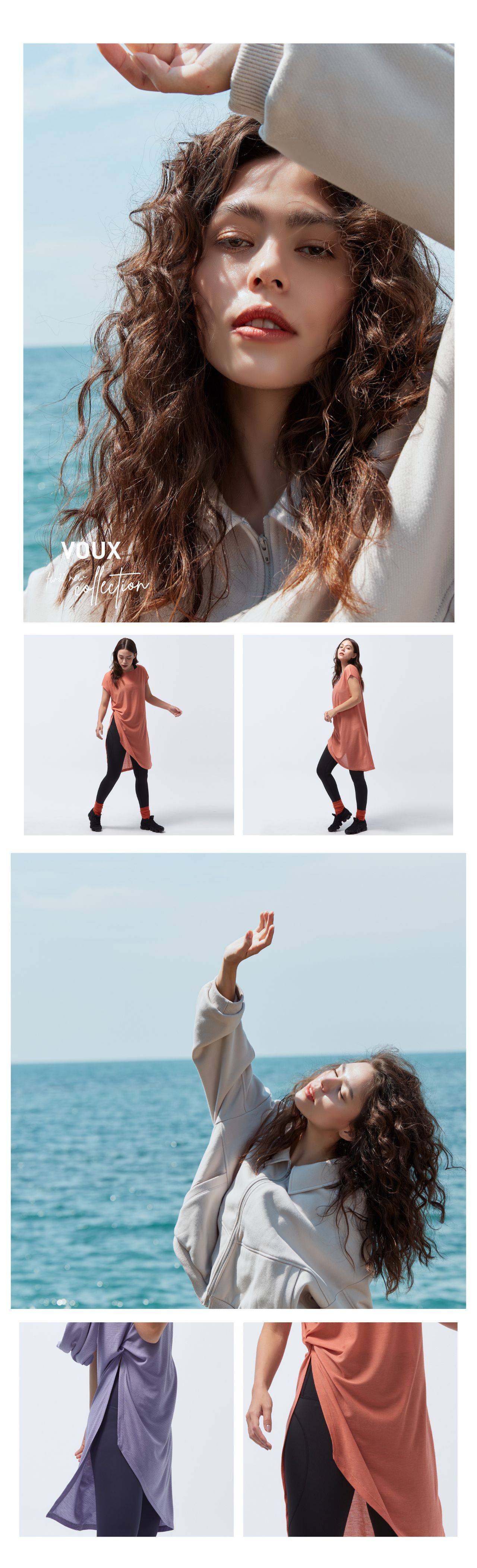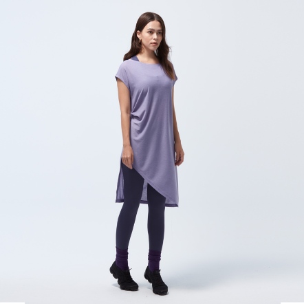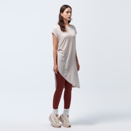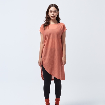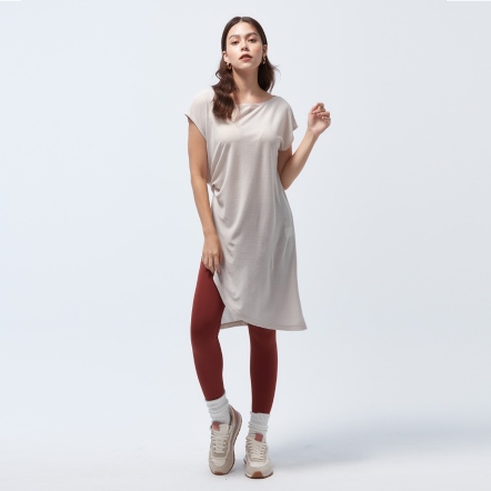 微落肩寬鬆版型,細緻格紋交織,展現輕巧布料工藝船型領顯露肩頸部線條側邊立裁紐結與開衩設計,拉長腿部比例吸濕速乾、抗菌除臭