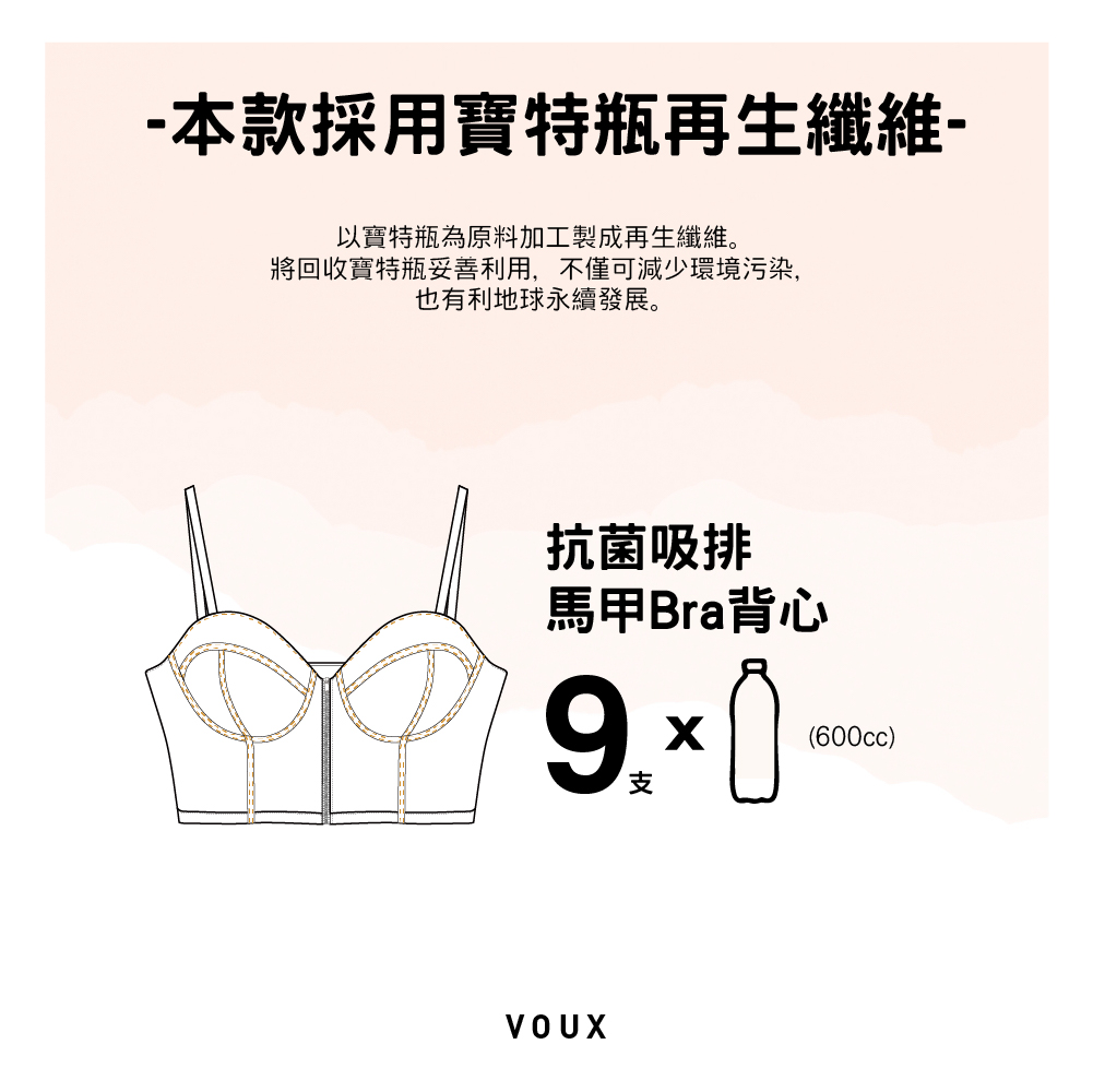 修身廓型、立挺質感可調式LOGO緹花肩帶2in1內建支撐罩杯環保紗線高彈舒適吸濕速乾,抗菌除臭