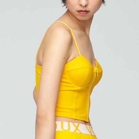 胸前自動鎖拉鍊方便穿脫,肩帶亦附有調節環,可自由調整長度。時髦短版衣長搭配亮眼的LOGO緹花肩帶,運動元素讓展現小性感的馬甲BRA也能帶有強烈個性,成就獨有的運動時尚風格!本款採用寶特瓶再生纖維,高彈的面料特性擁有立挺質感卻依然舒適滿分!
