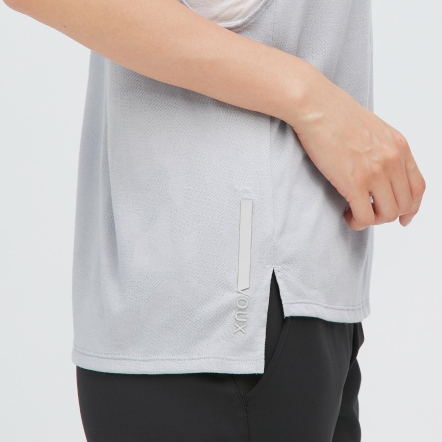 商品特色COZEE抗菌系列前短後長修飾身型衣襬反光燙條膠原蛋白紗線呵護肌膚吸濕排汗,抗菌除臭