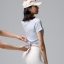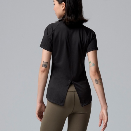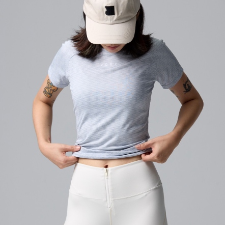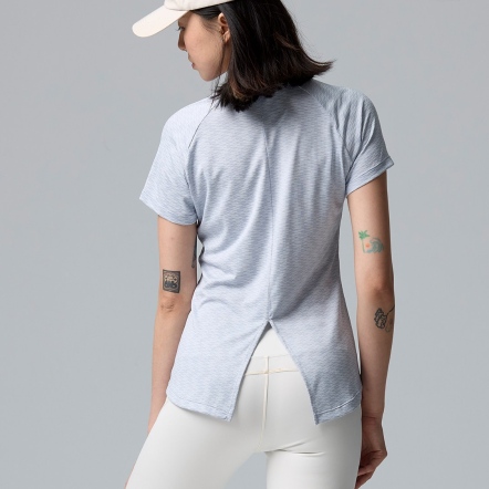 海浪石紋紗線組織,光照下似有波光粼粼之感,呼應本季內斂澄淨的自然氣息。前短後長的衣身搭配背部下擺的高開衩,微微蓋住臀部,巧妙修飾身型。