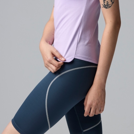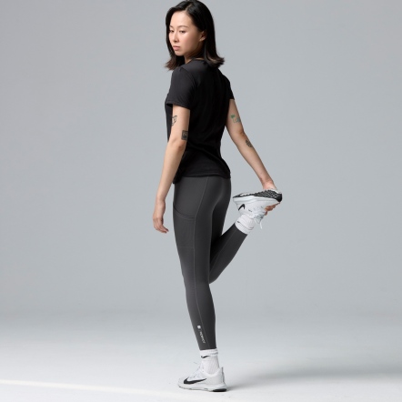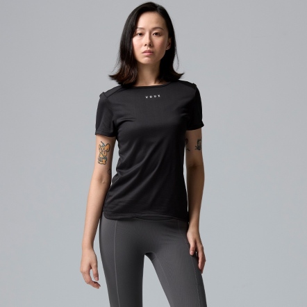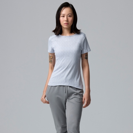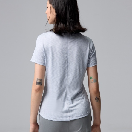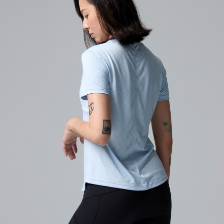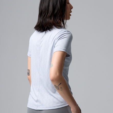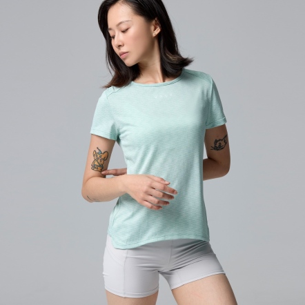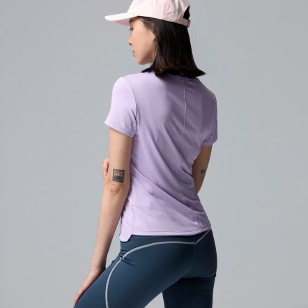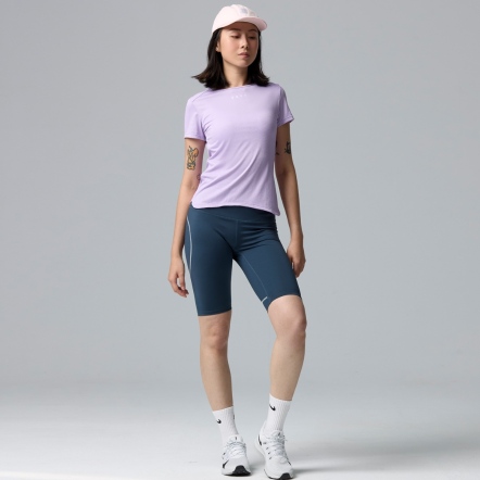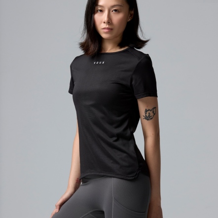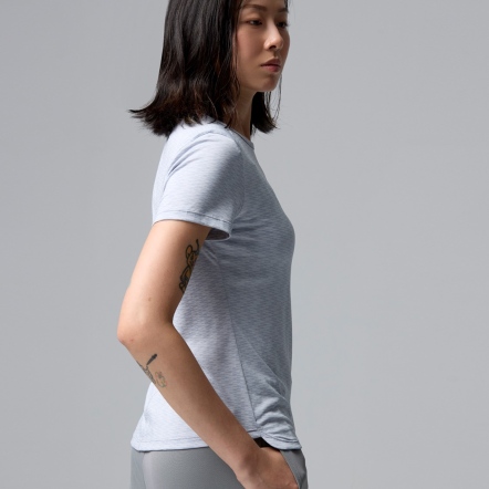 俐落線條結合沁涼科技面料、胸口品牌標準字燙標與側邊高低層次剪裁,不僅提升運動靈活度,更整體呈現簡約而精緻的機能美學。