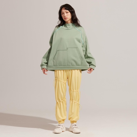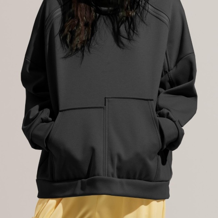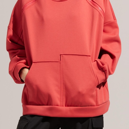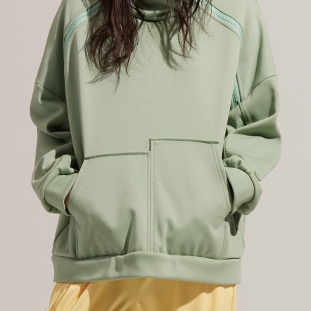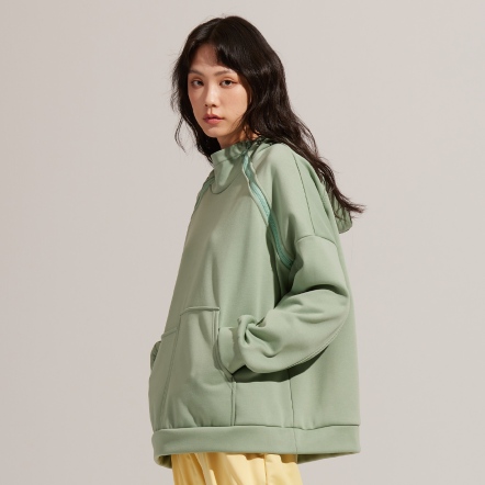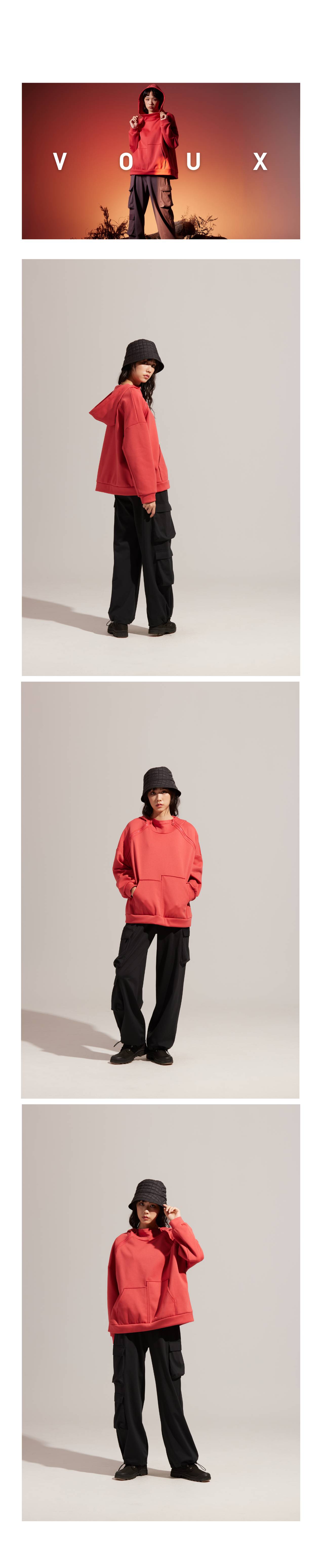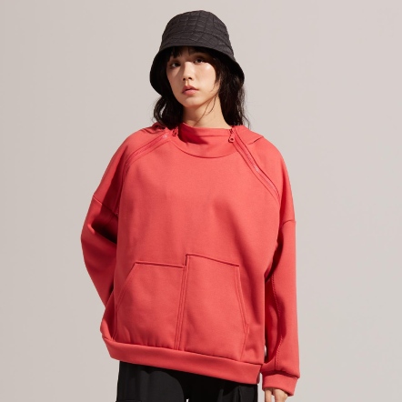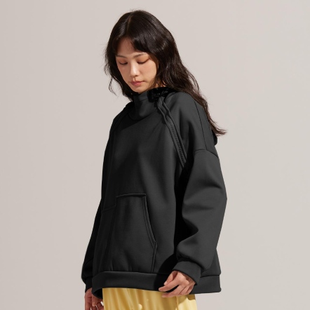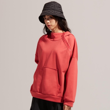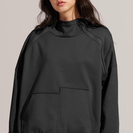 REBOOT-動能衣系列高領落肩款帽T兩側個性雙開拉鍊俐落不對稱機能口袋,知性獨特內刷毛棉感冬季保暖、舒適