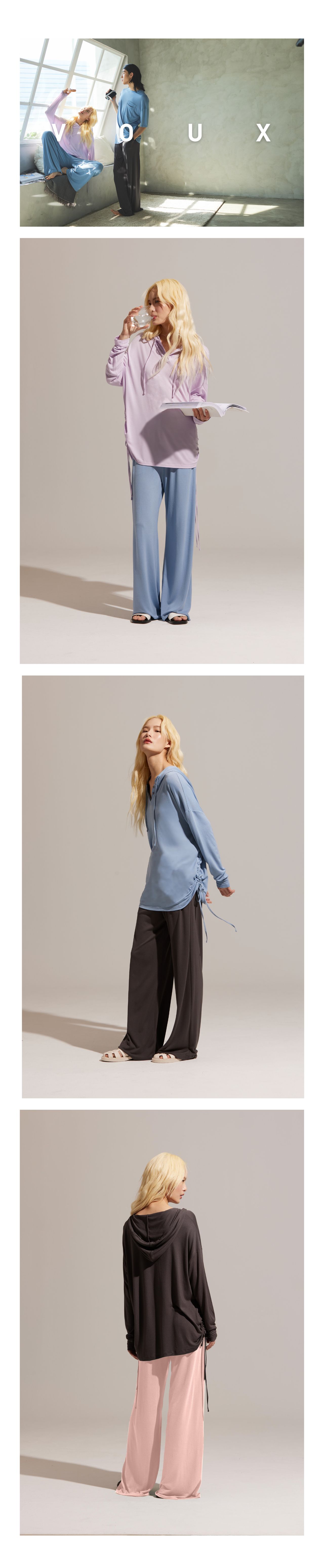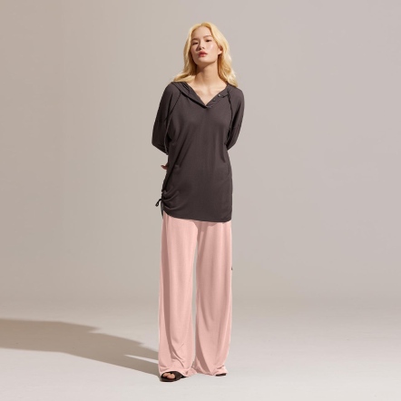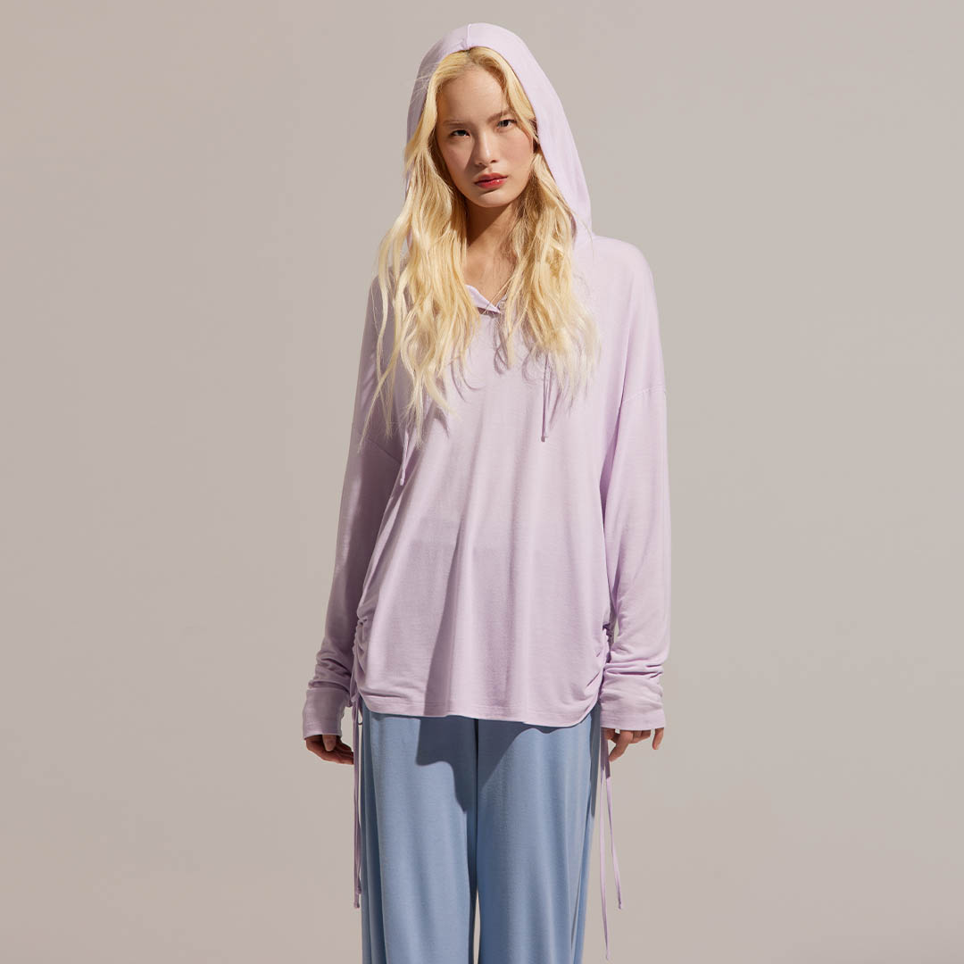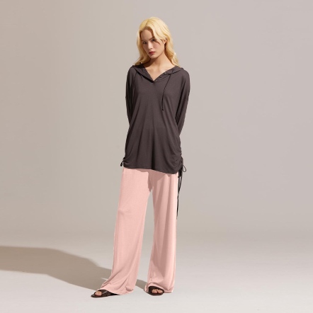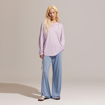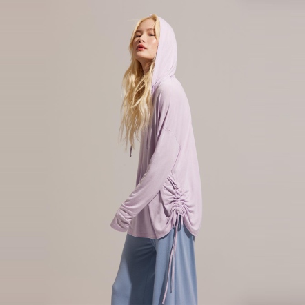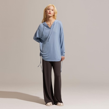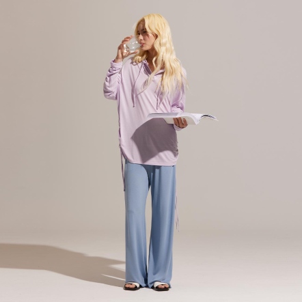推薦指南提升幸福感的家居服,絕對不能錯過這一款!合身抽繩設計,完美修飾局部曲線,體現自然隨性的居家風格;柔和的色調與輪廓,搭配富有垂墜感的裸感面料,舉手投足間之間都充滿著優雅且鬆弛的氛圍感。採用獨創O2MAX活氧纖維技術,鑲在紗線中的天然礦石,能在穿著時將體溫轉換為遠紅外線能量,幫助身體恢復理想狀態!