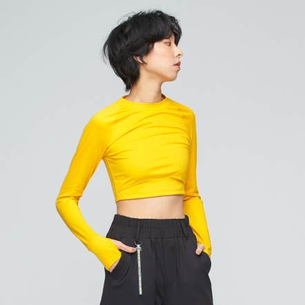 短版衣長搭配下擺鏤空的剪接設計,微微露出腰間最精實的部分,簡約內斂,卻依舊時髦搶眼!下身可穿著喜愛的Legging或運動短褲,盡情展現你獨特的運動穿搭風格!