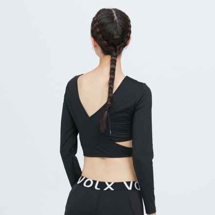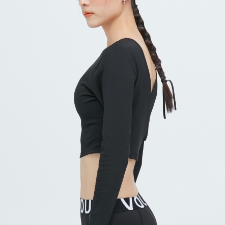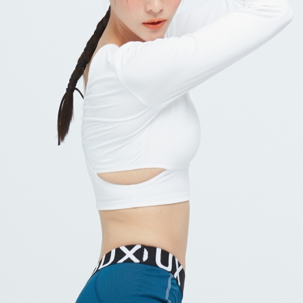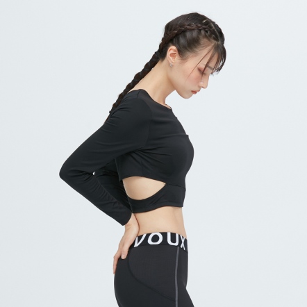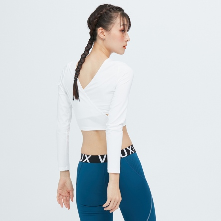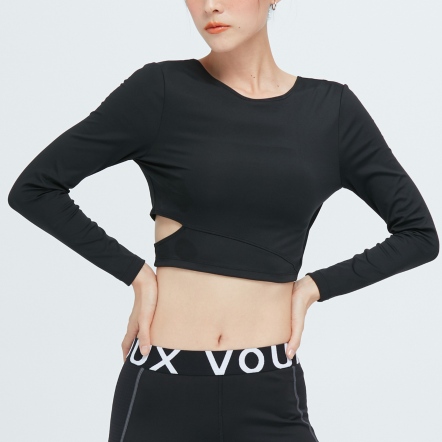 短版衣長出眾亮眼背部不對襯V型交叉側身摟空造型手感滑順細緻吸濕排汗、抗菌除臭