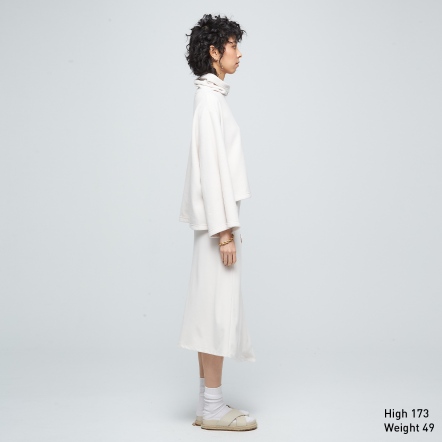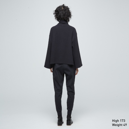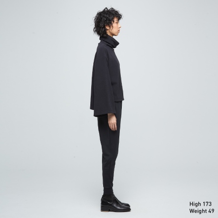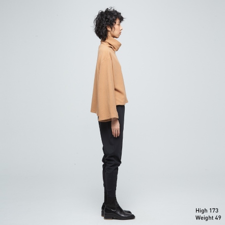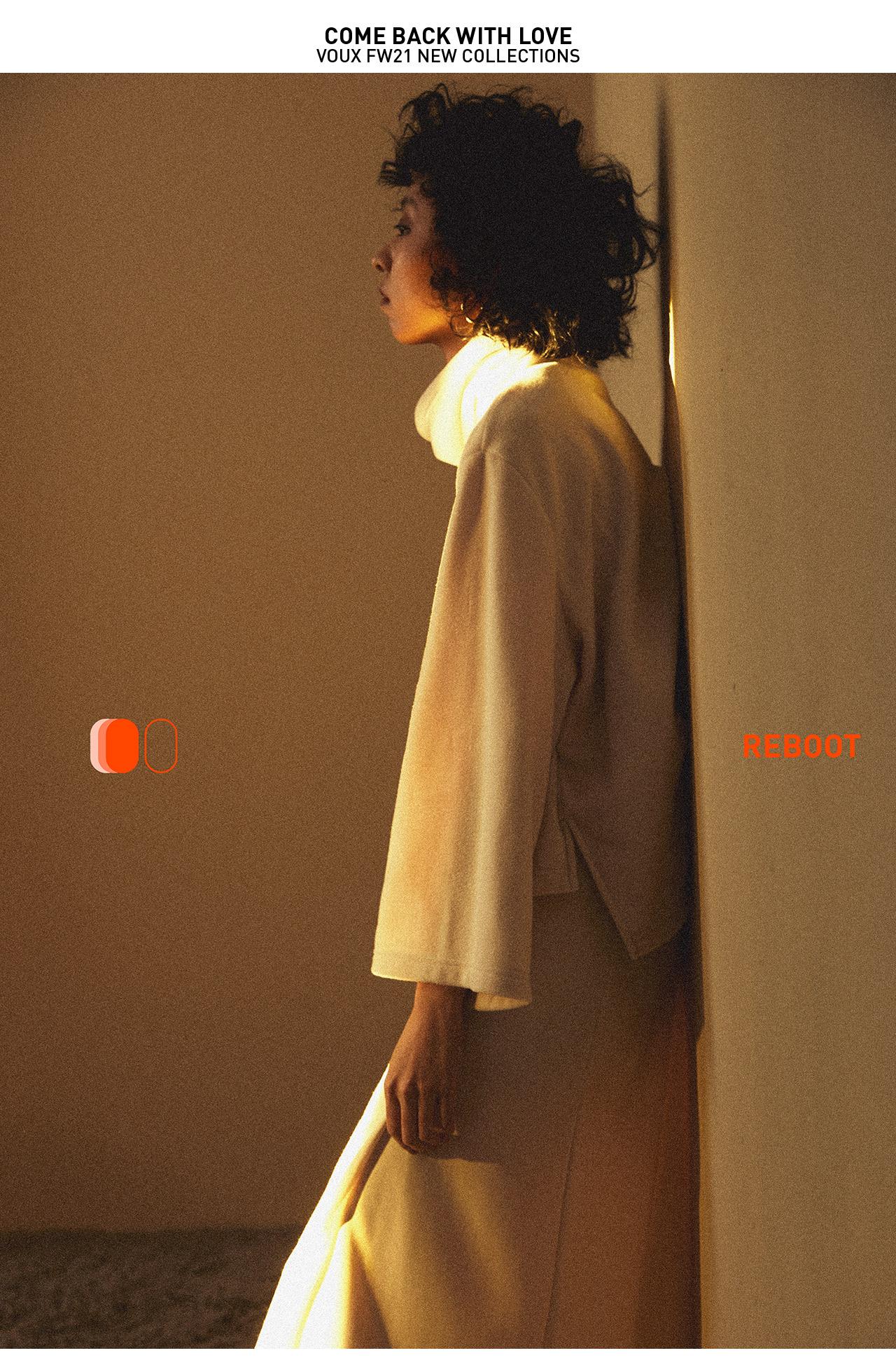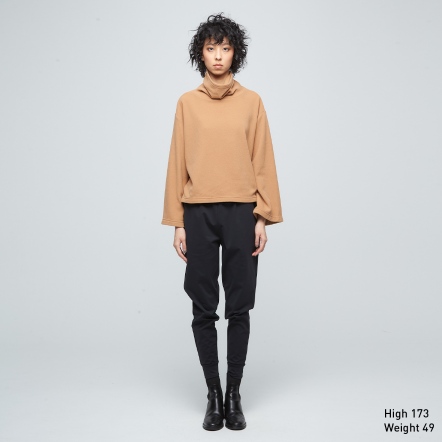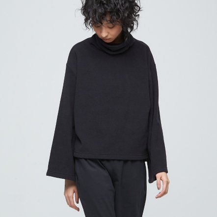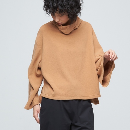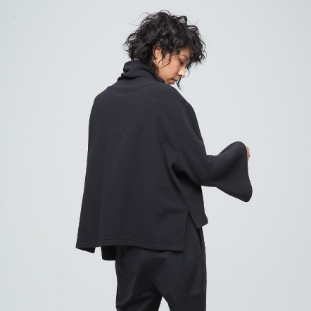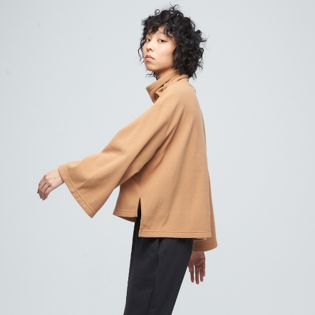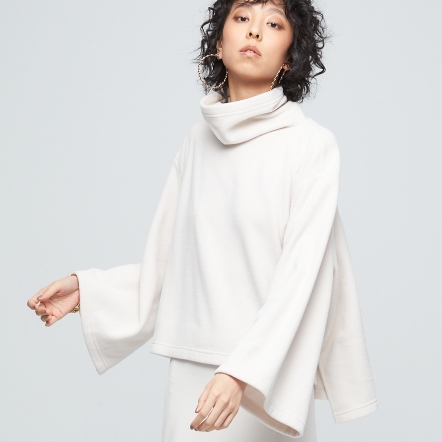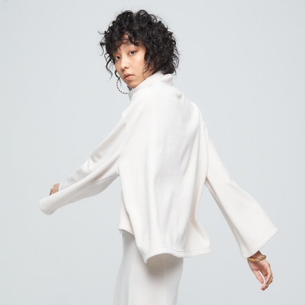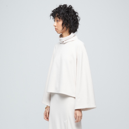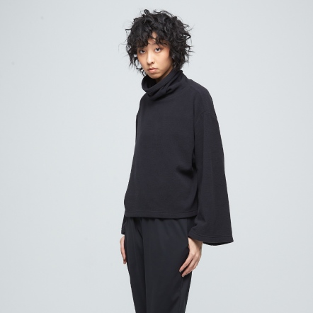 高領寬鬆版型短版衣長讓身材比例更完美七分袖長,優雅俐落