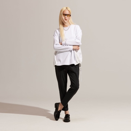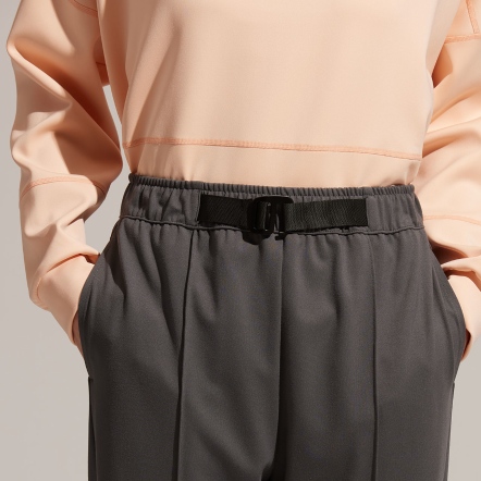 以極簡的設計及實穿的日常服裝作為設計的理念,詮釋經典復古英倫風合身褲型。腰際鬆緊細節調節扣,著衣時更加自然舒適,在視覺上也別具獨有風格。上寬下窄的特性能讓修飾身材曲線,展現最佳身形比例,完美詮釋女性的優雅與浪漫。