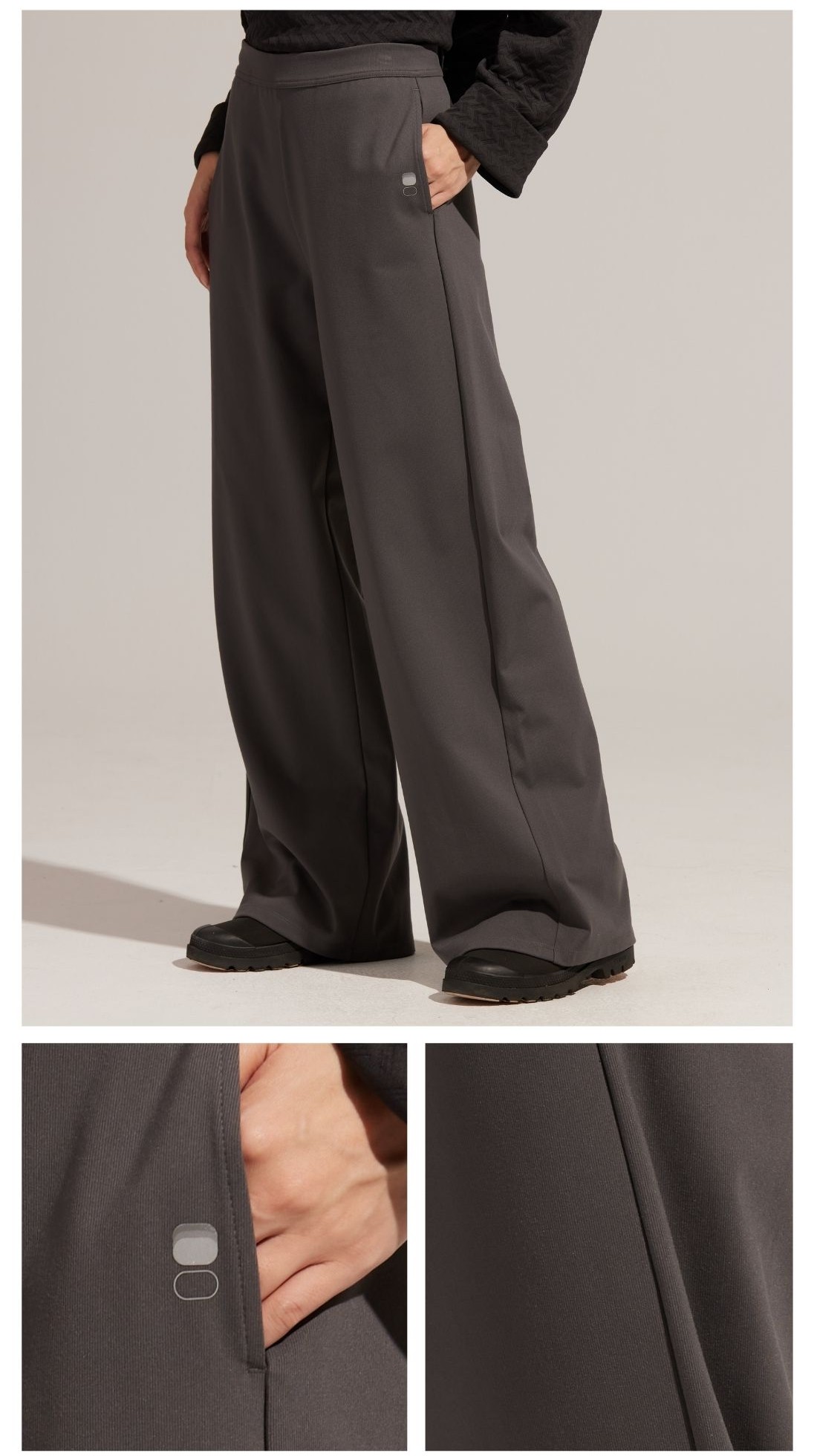 落地闊腿褲,富有垂墜感