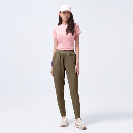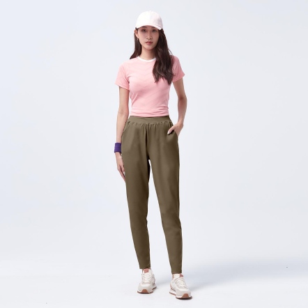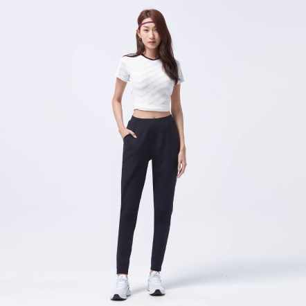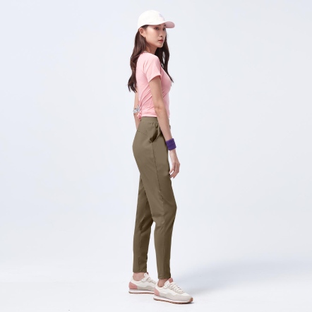 鬆緊腰頭兩側口袋,取物便利錐形修身褲型,剪接修飾線條,優化臀腿曲線