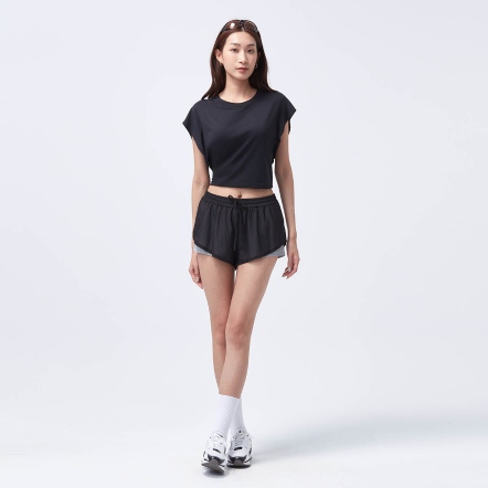 採用內層輕量布料結合外層透氣紗網,即使是高強度的運動訓練,也能常保乾爽舒適與美型。