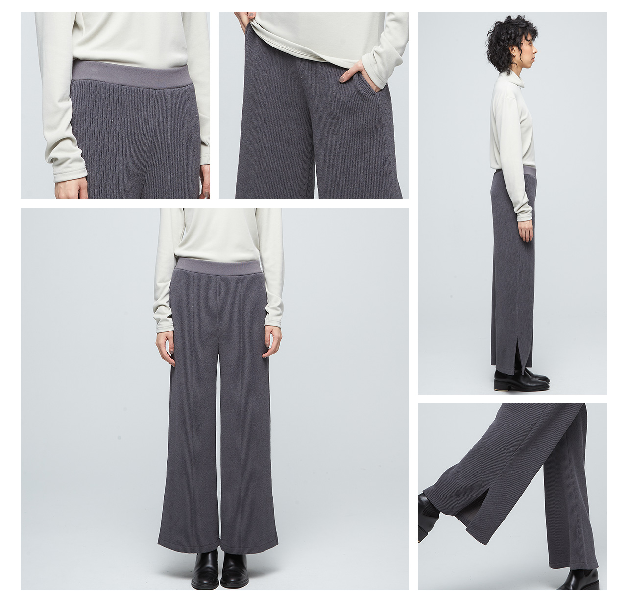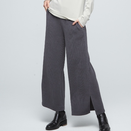 針織粗針面料彈性腰身兩側附有口袋寬管修身褲型吸濕排汗、抗菌除臭
