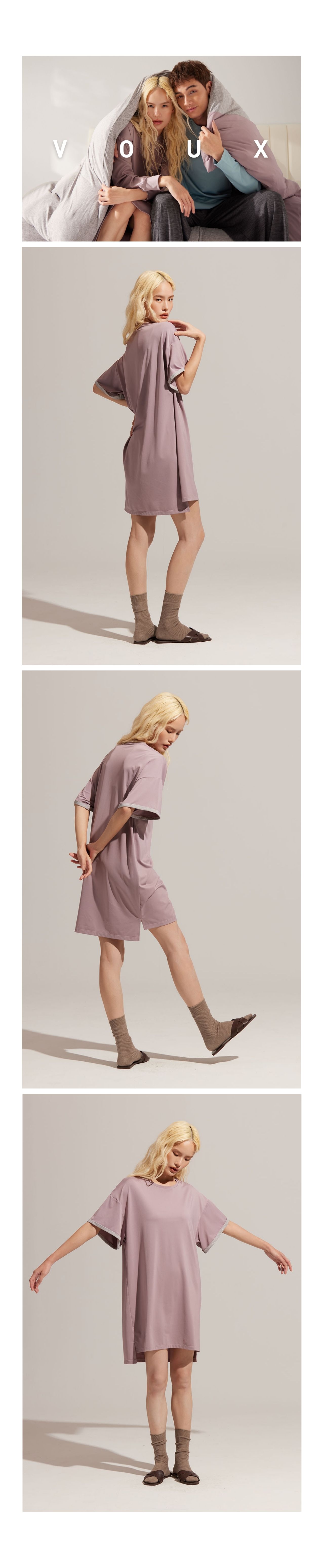 從袖口的剪接細節到極簡俐落的版型設計。除了講求視覺上的美感體現,也講求面料的選用,希望您能在著衣時能感受到輕盈綿軟的肌膚觸感,在夢鄉中也能感受到輕柔的呵護,讓美好的感覺不僅僅存在於白天。