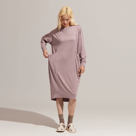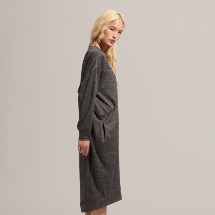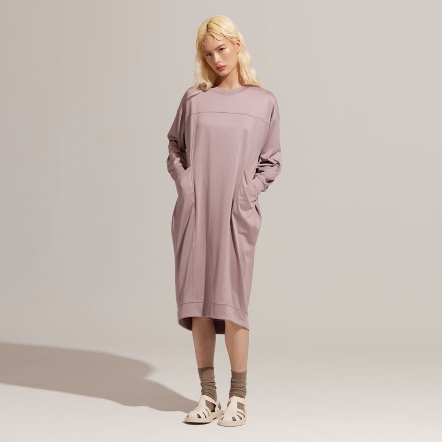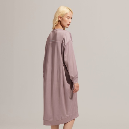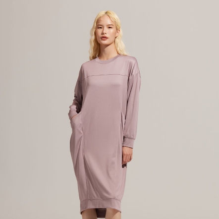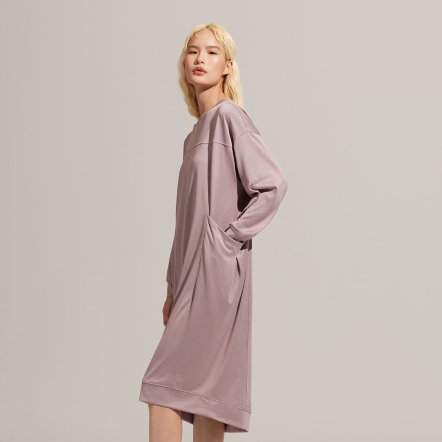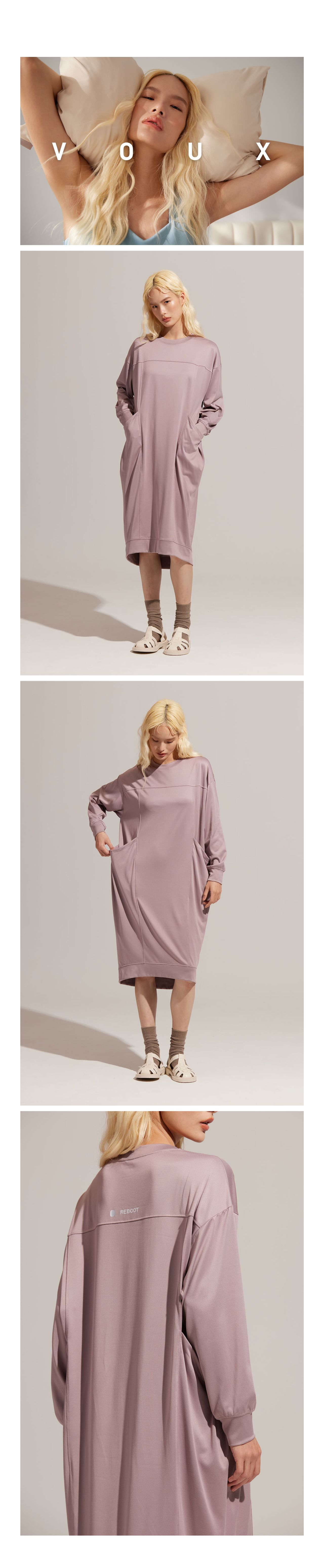 洋裝擁有獨特的繭型設計能自由延展,整體視覺極簡卻不乏味,多了幾分高級從容感。兩側的機能大口袋設計為睡衣增加了實用性,讓您走到哪都能輕鬆收納。將美好的24小時環繞每分每秒,不論在夜晚入睡,還是在早晨醒來,都能達到一定程度上的舒適深眠。