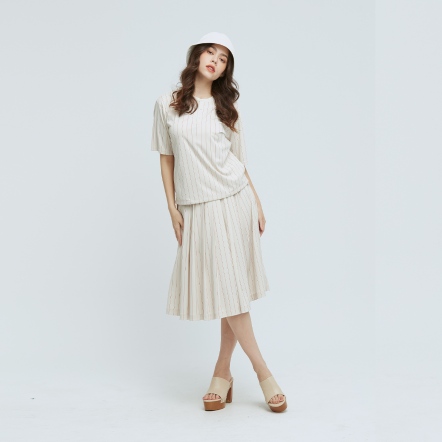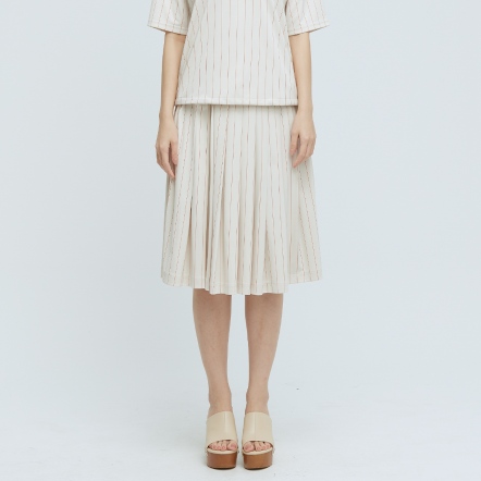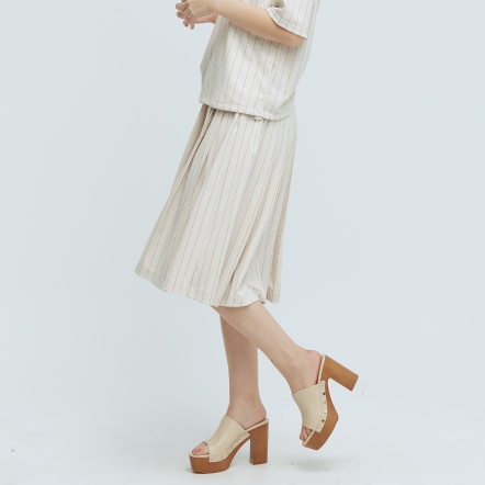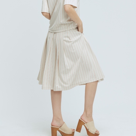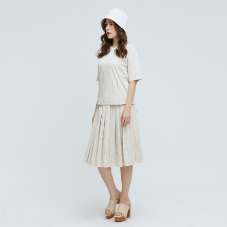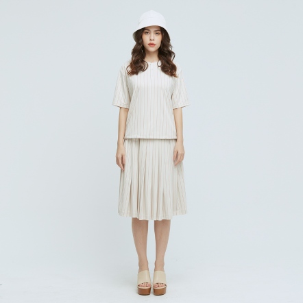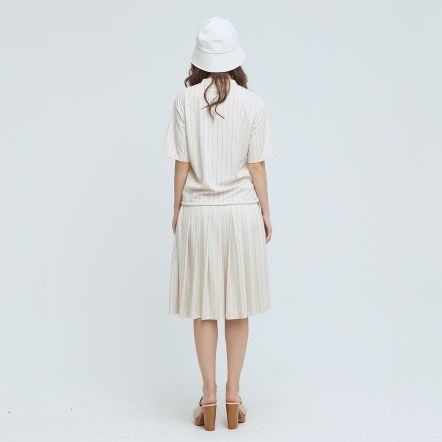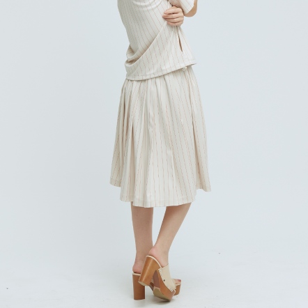 質感百搭中長裙素面打褶造型兩側隱形拉鍊口袋,兼顧造型與實用性