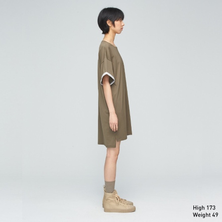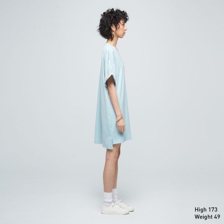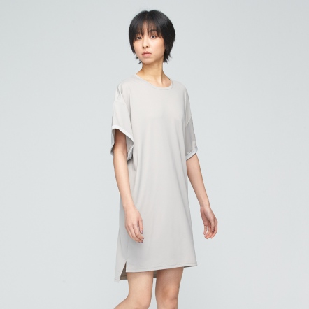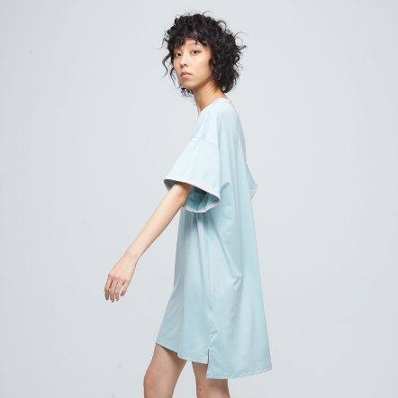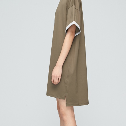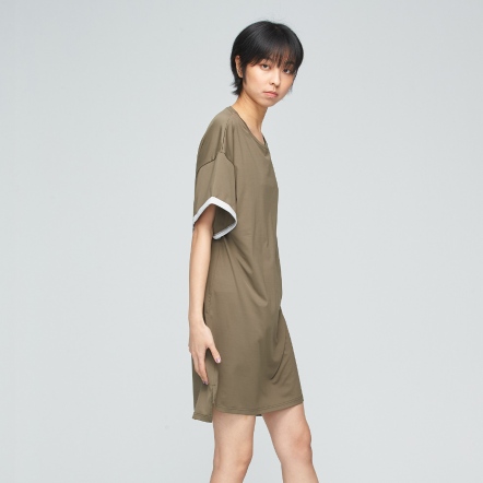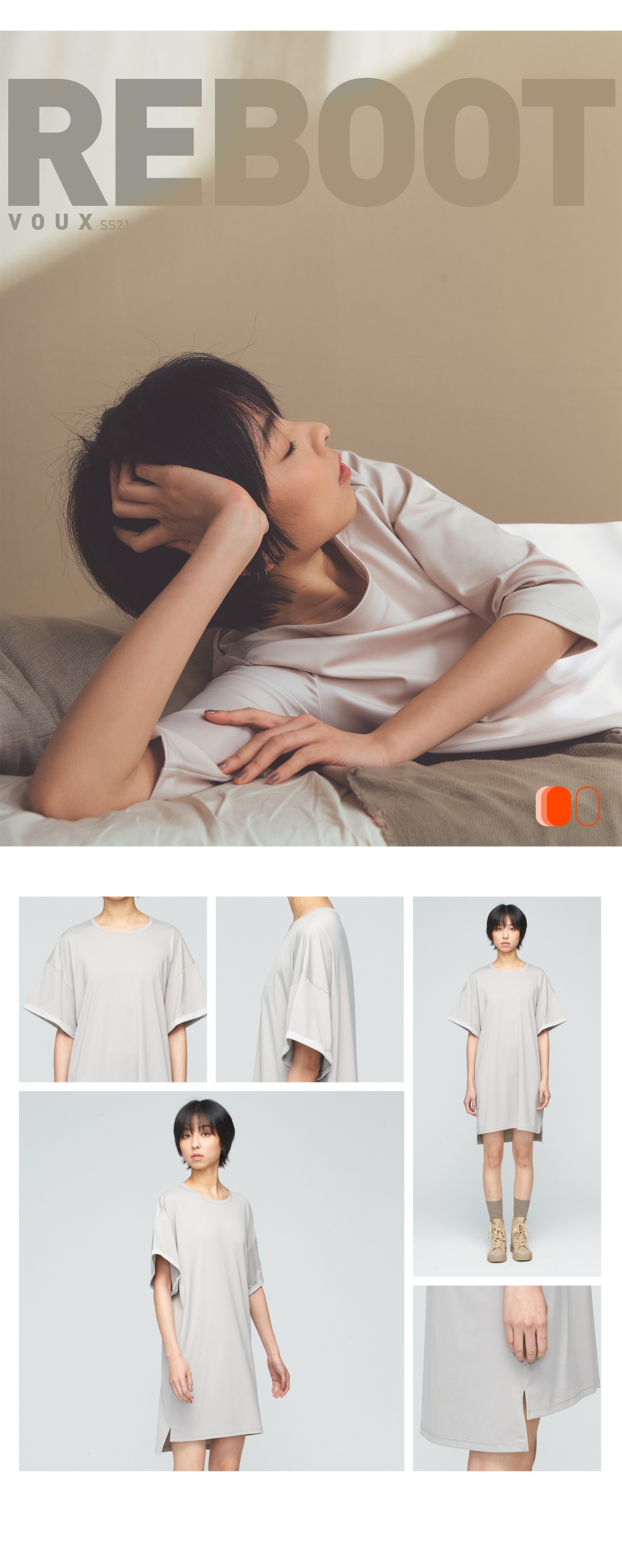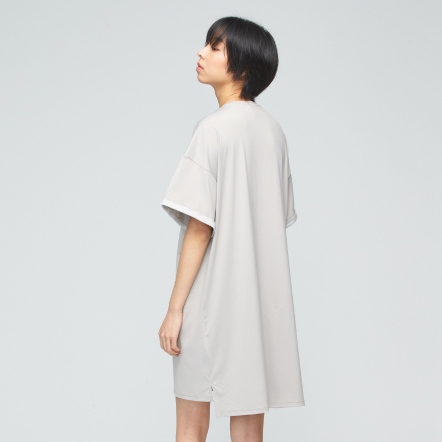 寬鬆落肩版型,輔以配色反摺袖口,為極簡風格新添變化,前短後長的裙擺及側邊小開衩展現質感細節,讓慵懶自在的居家洋裝多了一份精緻和講究。最適合追求生活質感品味的你!