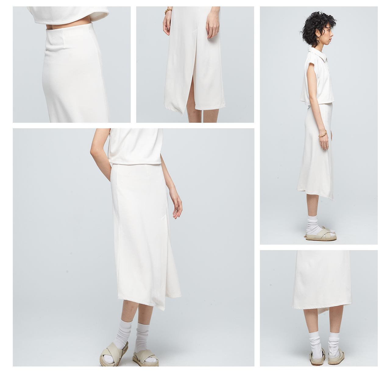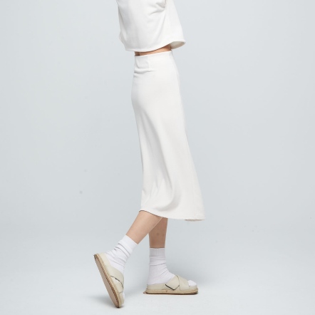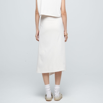 高腰中長裙,腰圍內側鬆緊帶設計,舒適不緊繃,後腰打摺造型,完美修飾臀型,搭配前開衩片裙,營造出優雅氣質的獨特魅力,很適合追求生活質感品味的你!
