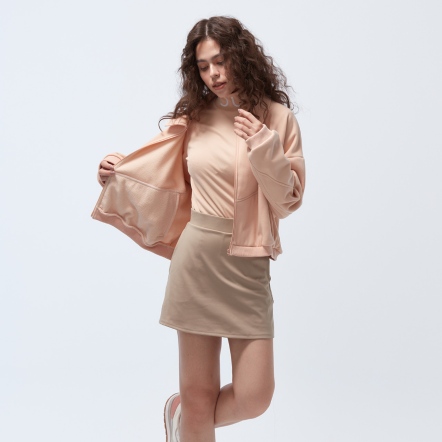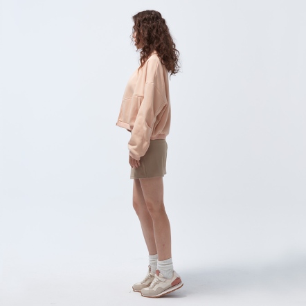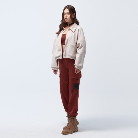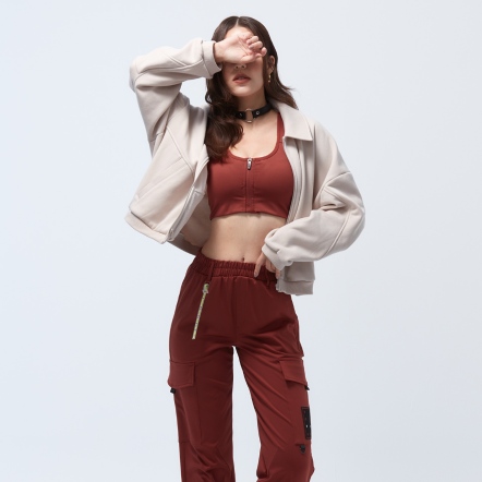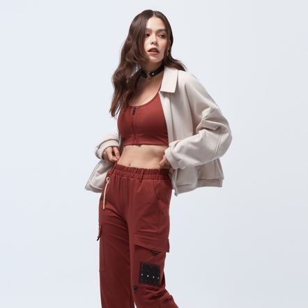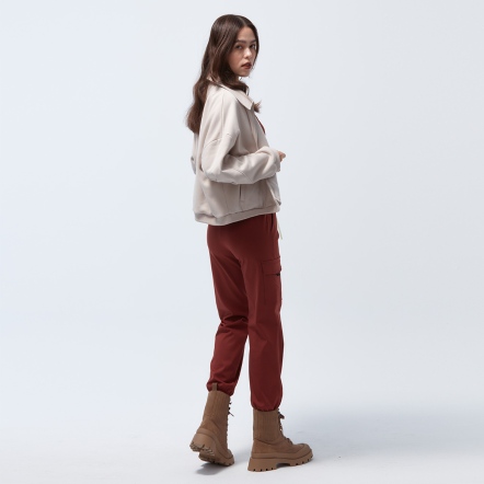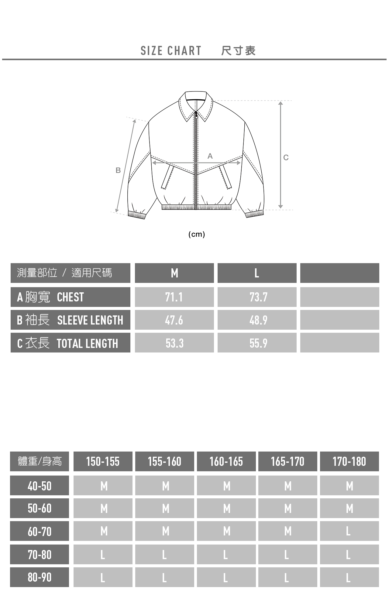 寬鬆空氣感版型彈性羅紋束口,修飾身型後袖打摺增加立體度兩側斜口袋,兼具造型與實用表面斜紋理結構,內層柔軟刷毛