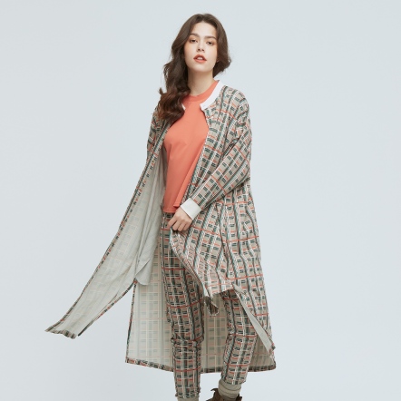 長版衣長具修身效果,遮蓋臀部曲線,選用遠紅外線機能紗,觸感親膚。加上度假風情的格紋印花,不只可做為罩衫外套也可單穿,建議搭配同款束口褲。本款採用O2MAX活氧纖維技術,鑲在紗線中的天然礦石,能在穿著時將體溫轉換為遠紅外線能量,加快血流速並活絡血氧量,幫助身體恢復理想狀態,穿著效果因人而異,於高度疲勞或運動後穿著效果愈加顯著!