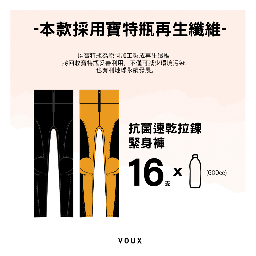 安排多處剪接曲線修飾身形,高度包覆的高腰造型,具良好收腹效果!褲口附有自動鎖拉鍊,運動前後皆可優雅穿脫。本款採用寶特瓶再生纖維,布感舒適高彈,適合在進行各式運動時穿著,也能作為日常運動休閒風格的混搭單品時髦上街。