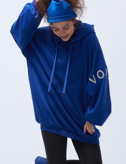 運動休閒風也能展現女子力的個性單品,連帽上衣的長度可直接做為洋裝單穿,也可搭配下著,創造不同穿搭方式。內層刷毛舒適保暖,寬版抽繩與蓬袖型加強寬鬆感,達到更修身的效果。