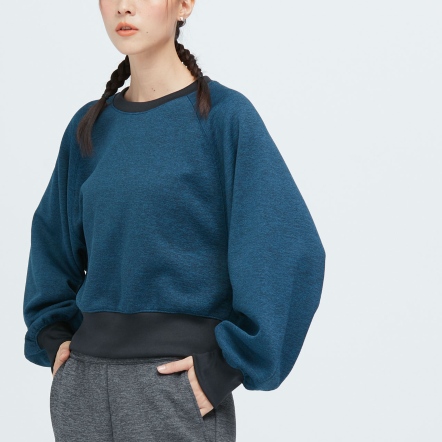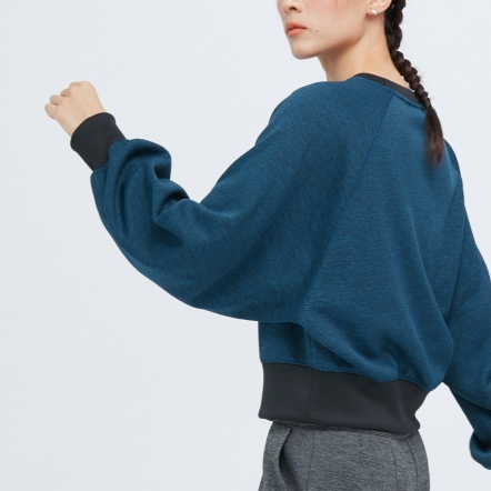 拉格蘭袖便於活動甜美氣球袖型吸濕排汗、抗菌除臭麻花紋理刷毛保暖面料