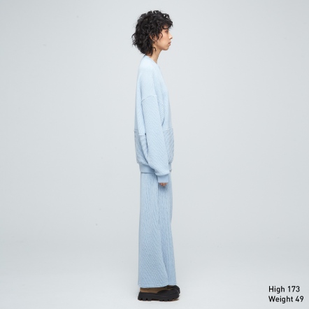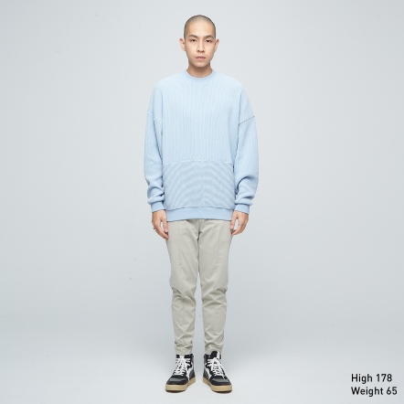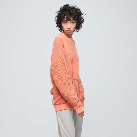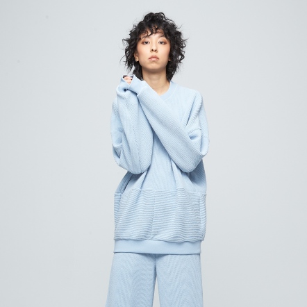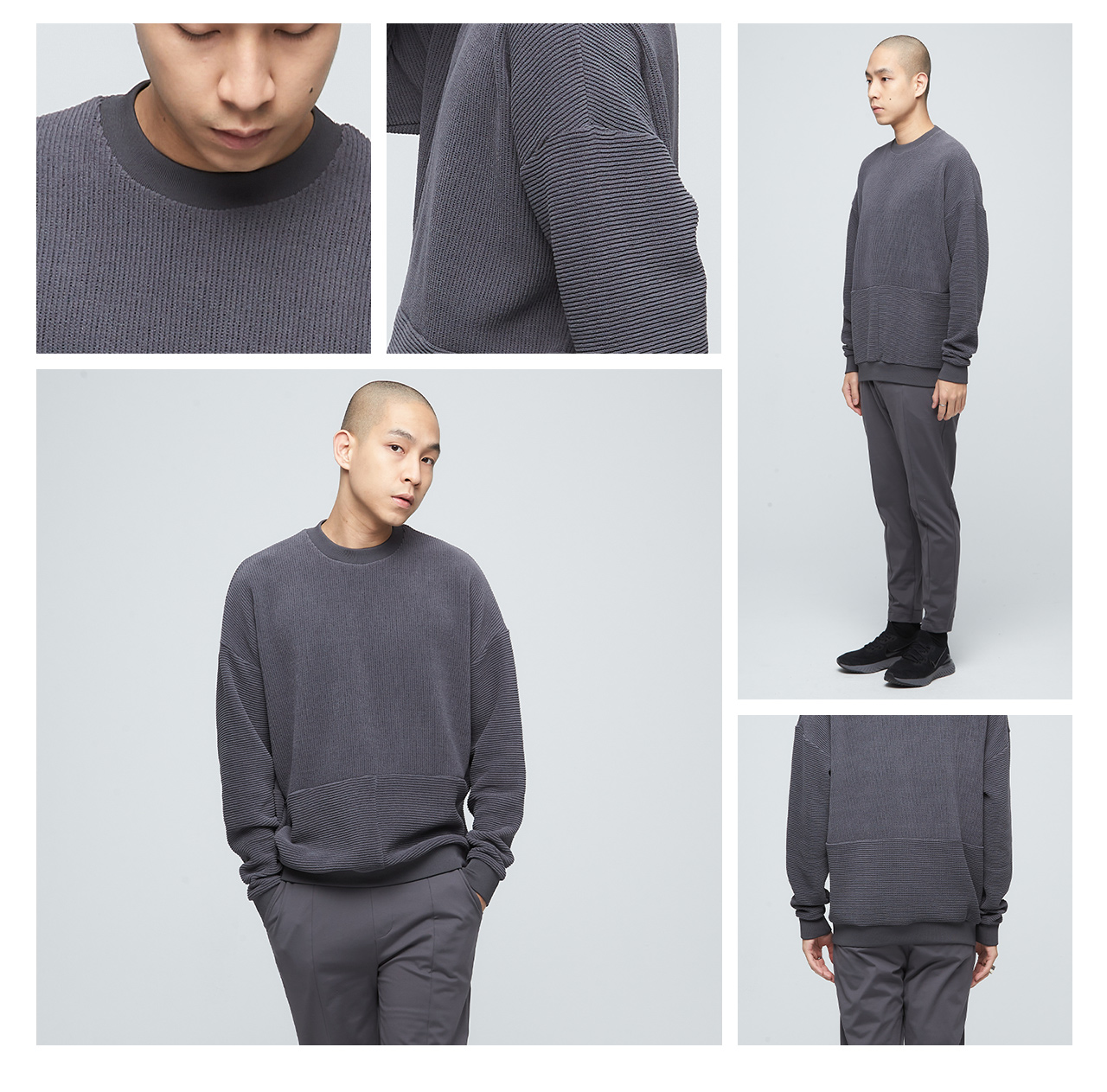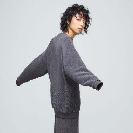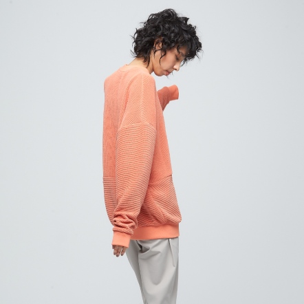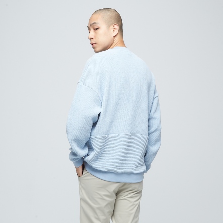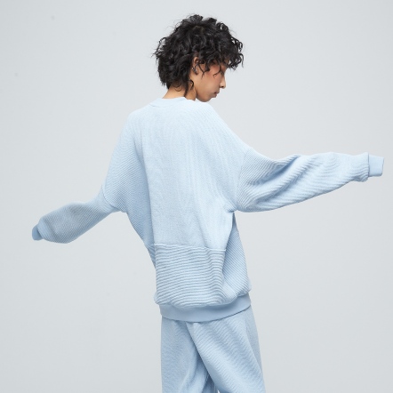 針織粗針面料,手感輕盈柔軟,結合羅紋袖口及下襬,保暖又舒適。落肩寬鬆版型搭配前後剪接造型,讓簡單衣著也能有不同變化,不論居家穿著或外出搭配,都能展現都會生活的質感品味。