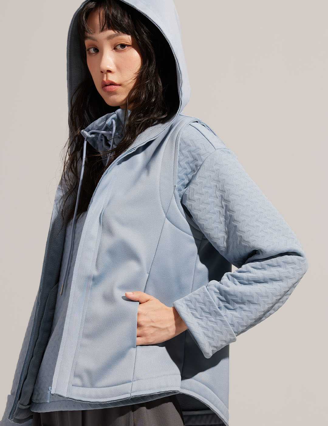 擁有特殊公主線剪裁的剪邊連帽背心,能拉伸整體身長比例;下擺兩側雙弧的細節設計更顯俐落、獨特,使整體闊型不呆版,增添幾分奢華感。面對突如其來的壞天氣,它擁有防水透濕、內刷毛抗寒恆溫的特性,戶外Outdoor穿搭自然不能少了它。