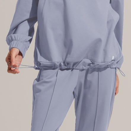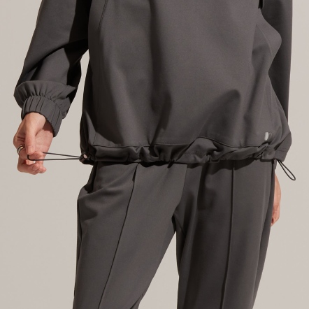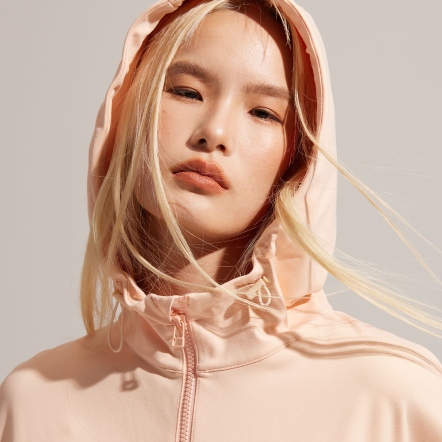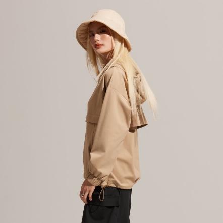 連帽中領、下擺抽繩設計,可依照喜好調整