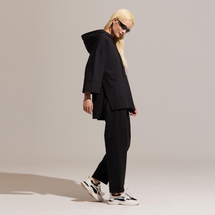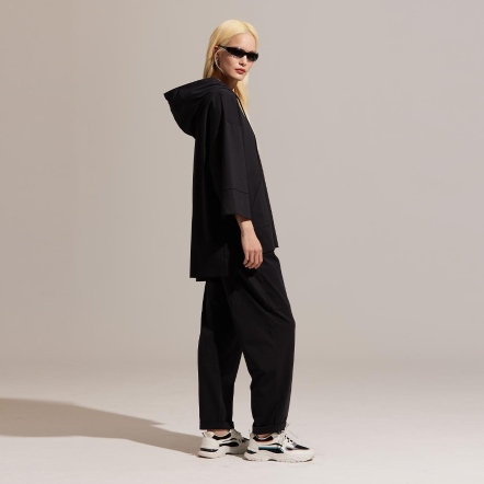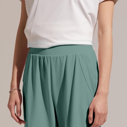 不挑身材的褲款,寬鬆舒適更顯俐落,完美修飾身形;褲腳的反摺細節設計,打造出日常休閒氣息;布料採用延展性極佳的彈性材質,透氣、不悶熱的特性,在炎熱的夏季也能穿著,自在不黏膩。採用O2MAX活氧纖維技術,鑲在紗線中的天然礦石能加速血液循環,幫助身體恢復理想狀態。