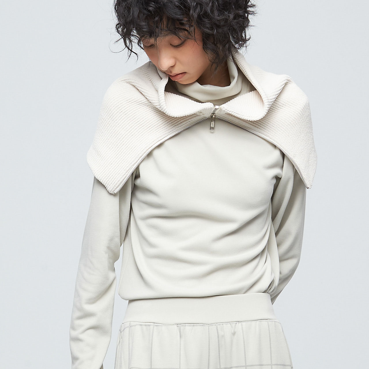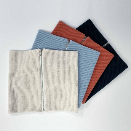 開口拉鍊設計,穿戴方便,針織粗針面料,手感輕盈、膚觸柔軟,是冬日必備的蓄熱保暖配件。